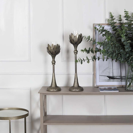 Tall Metal Floral Candle Holder