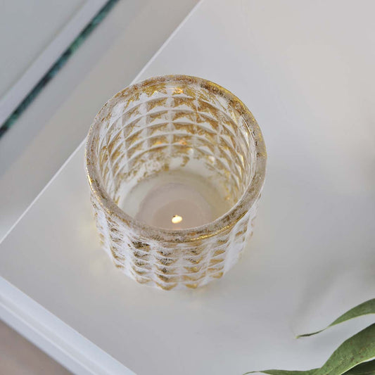 Diamond Brushed Gold Candle Holder