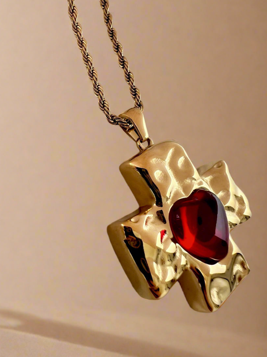 Molten Cross Heart Necklace Chain – 18k Gold Plated
