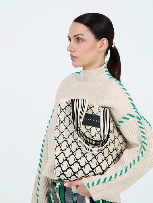 Jacquard Sweater in Oatmeal and Charcoal
