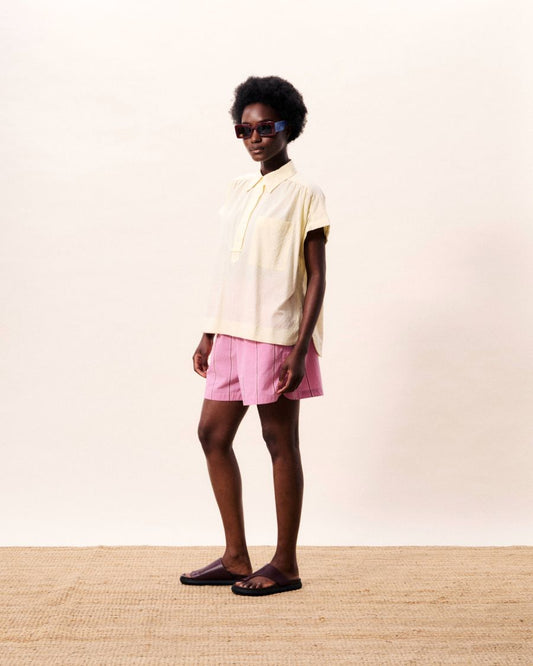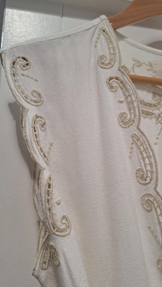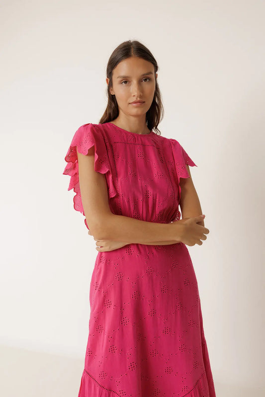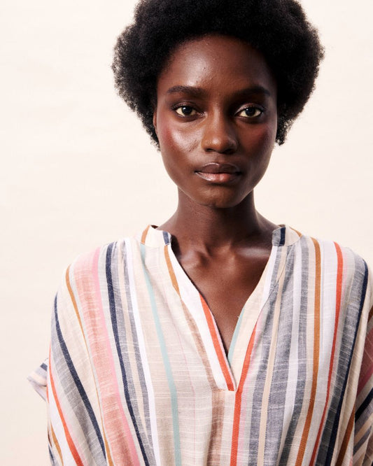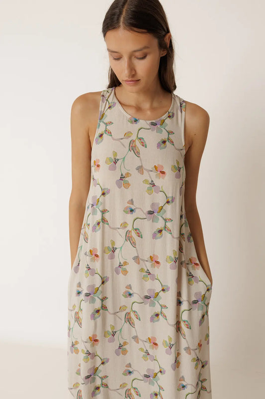 Hyacinth Dress in Cream with Red & Blue Pattern