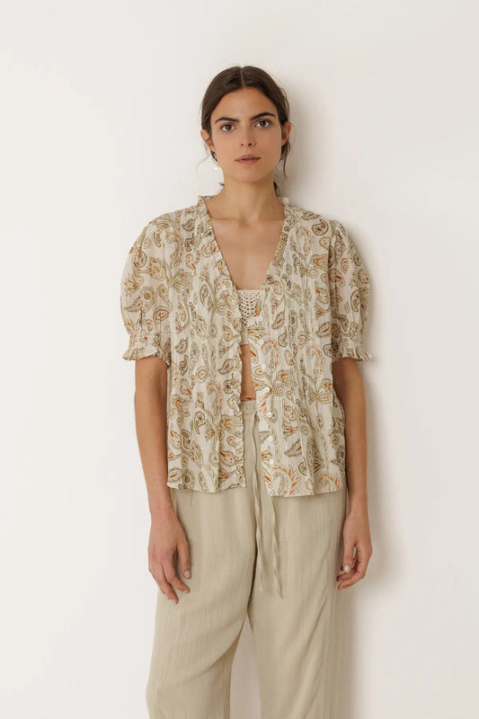 Gracie Jumpsuit in Blue & Cream Paisley Print