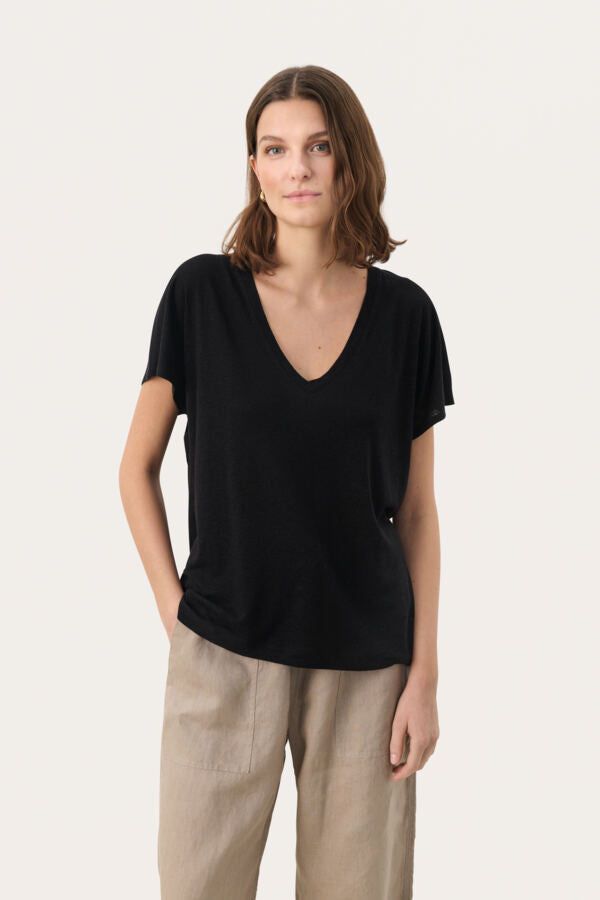 This short-sleeve T-shirt is a must-have for any wardrobe. With its soft fabric and neckline, it offers a timeless look that’s perfect for everyday wear and layering.