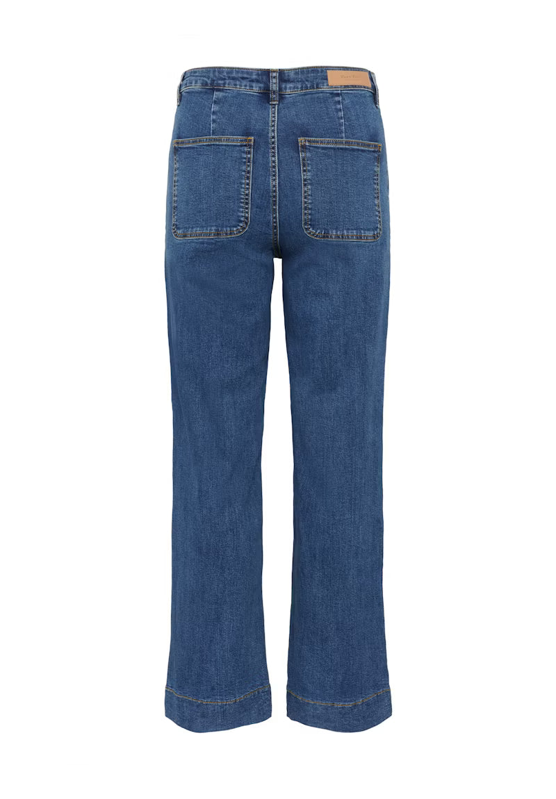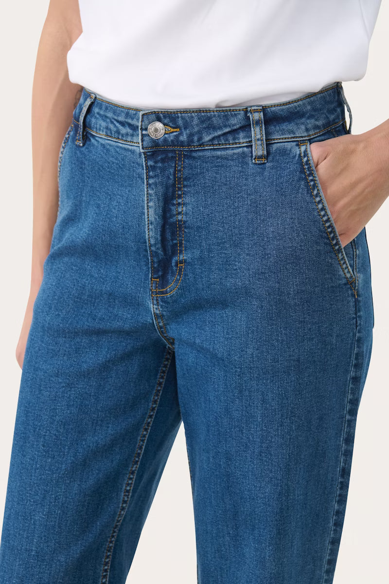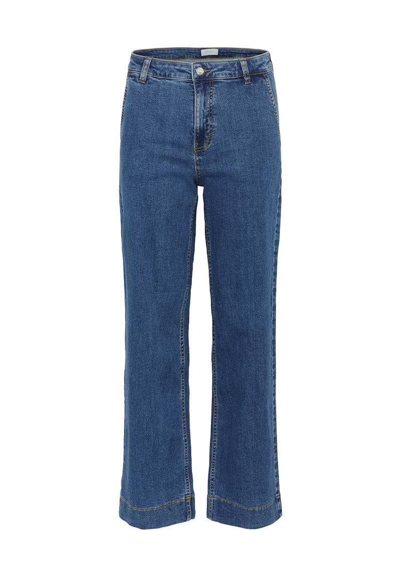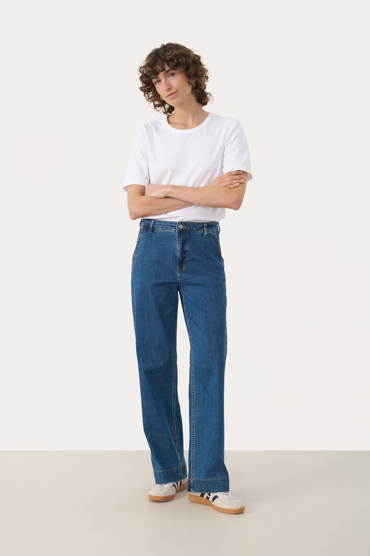 The model is 178 cm tall and wears a size 28. These high-waisted wide-leg jeans offer a cool and relaxed look. The wide legs create a flattering silhouette, while the classic denim ensures a timeless expression. Pair them with a simple T-shirt or shirt for an effortless everyday outfit.