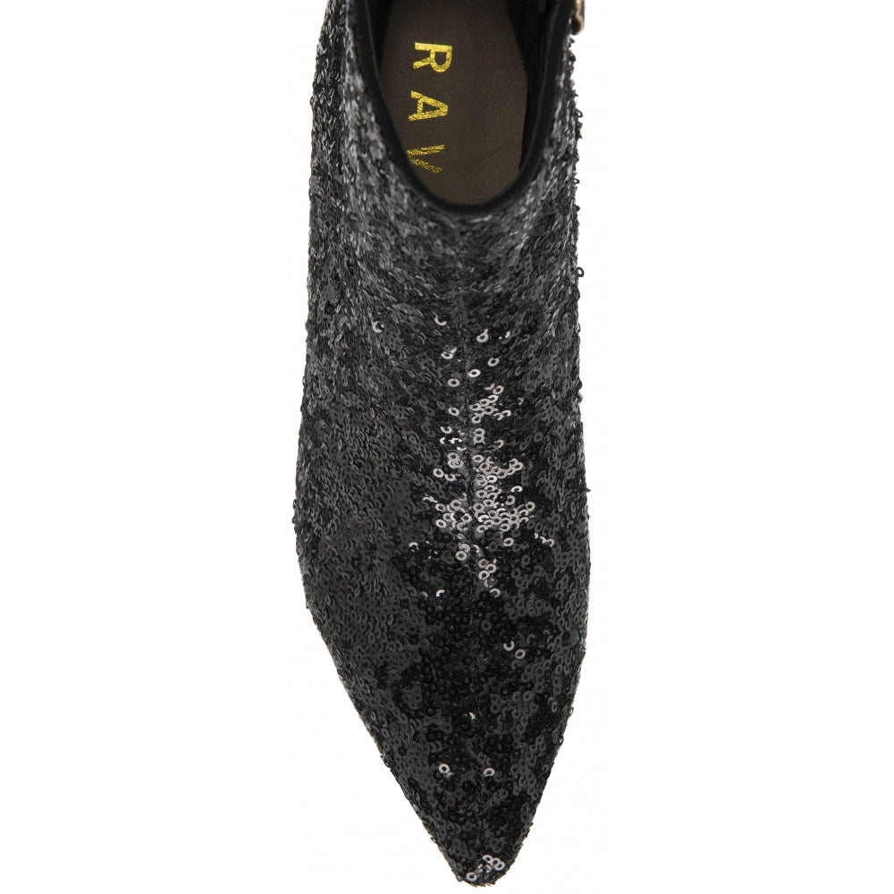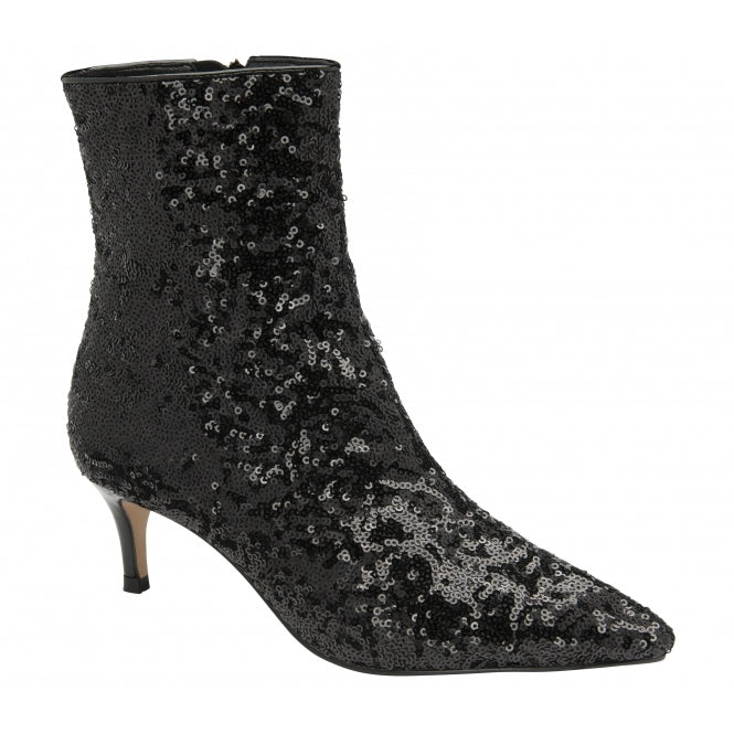 This black sequined Ravel ankle boot is a stylish choice that will be sure to make a statement this season. Covered in sequins, this ankle boot not only looks great, but it features a side zip fastening making it easy to put on/off. Set on a wearable 6cm kitten heel for enhanced comfort, this women's ankle boot adds the wow factor to any look. Currans will look great when paired with a blazer dress and is also available in silver, brown & beige zebra-print and gold.
