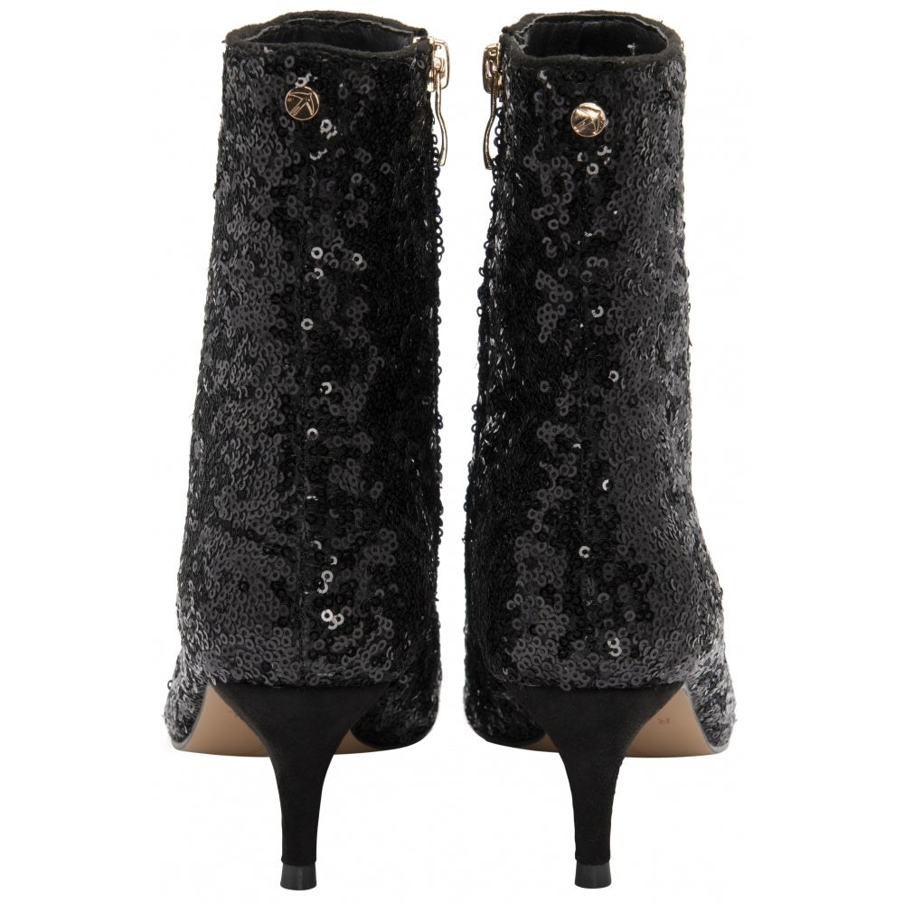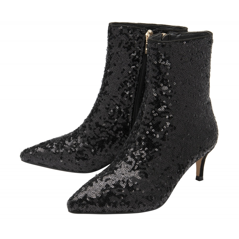 Black Sequin Currans Pointed-Toe Ankle Boots