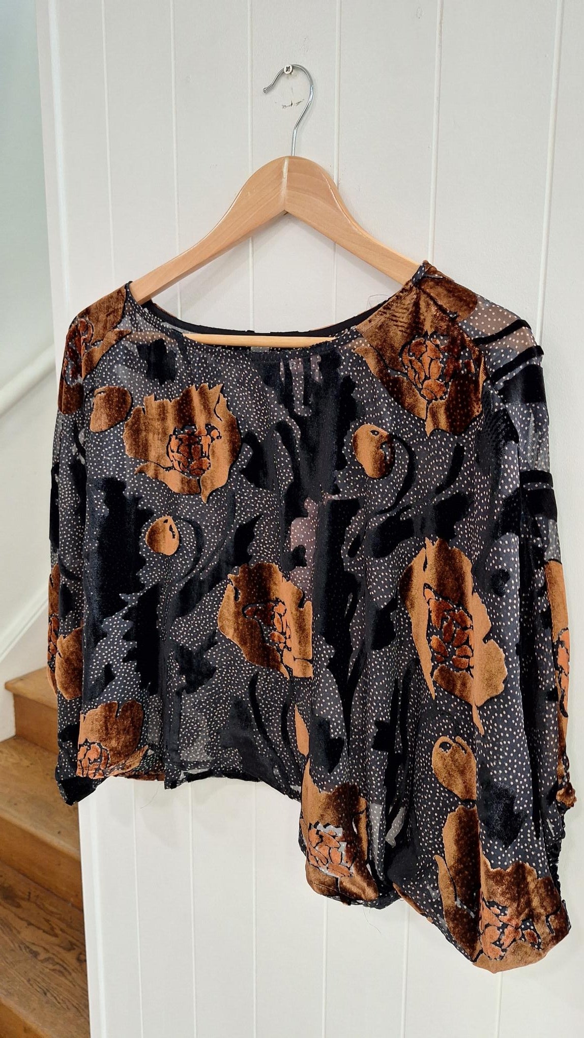 The Bloom Blouse is the perfect loose fit top for the Autumn/Winter season, with 3/4 length billow sleeves, dropped armholes and a flattering scoop neckline. Unlined.