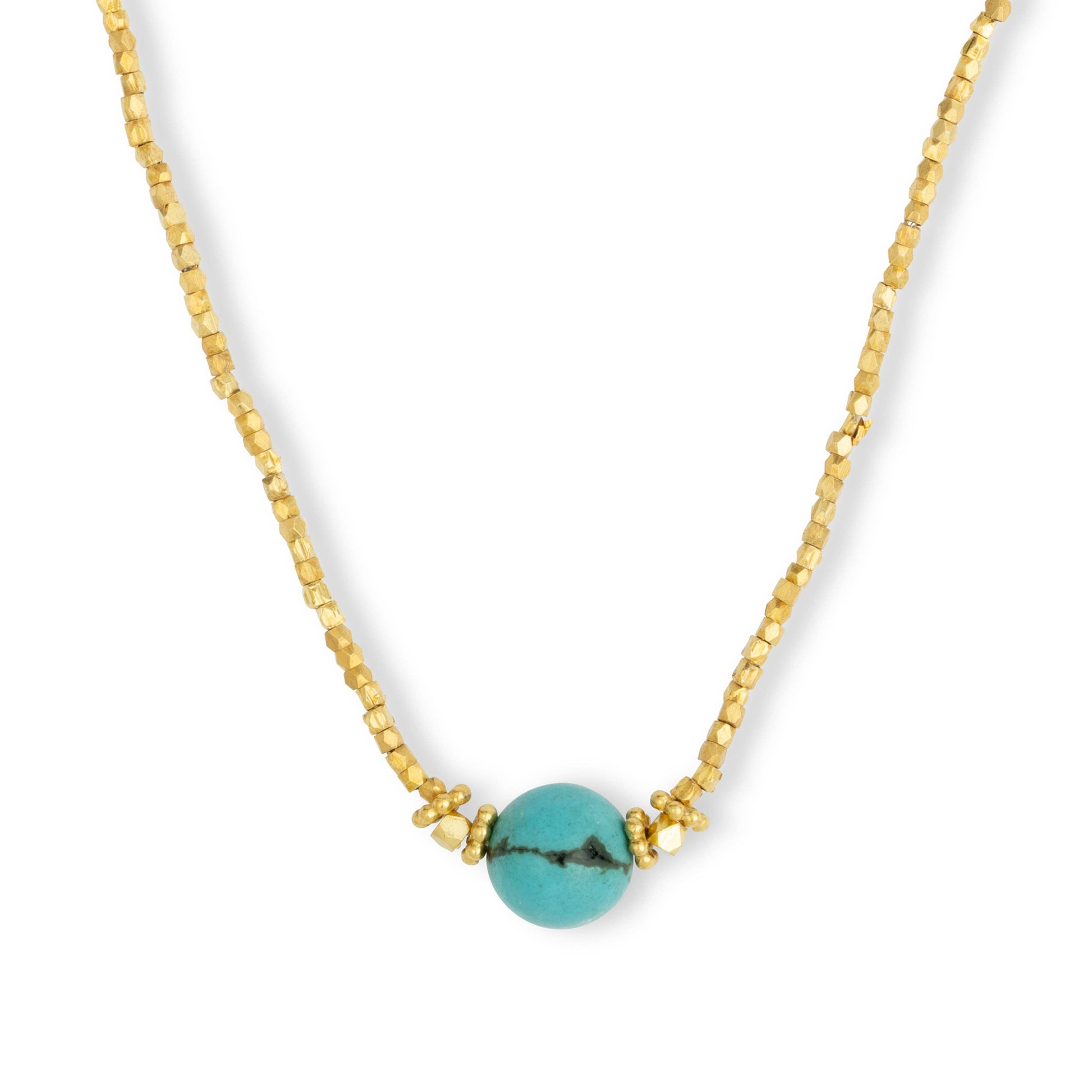 Gold bead choker necklace with turquoise howlite gemstoneWith tiny handcut faceted gold beads and a smooth gemstone bead, this choker necklace will be a staple in your new season necklace stack.