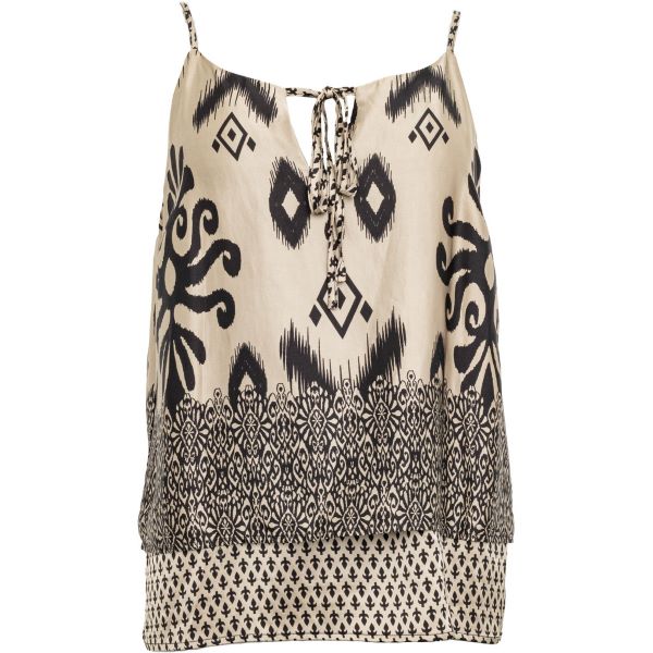 Border Sleeveless Top in Sand with Black Print