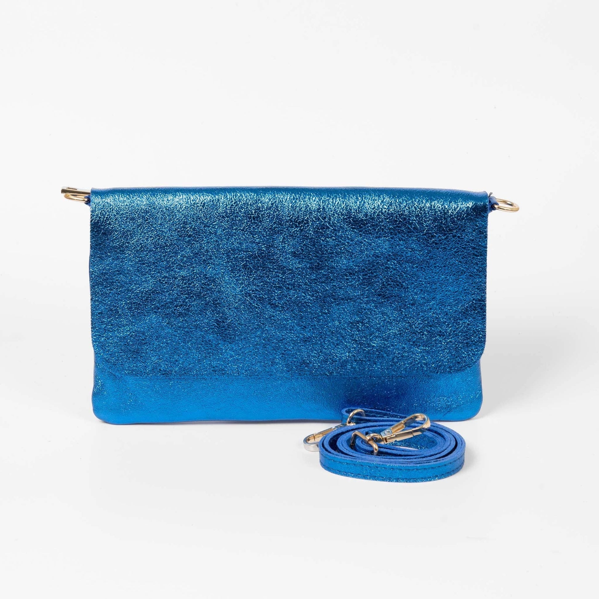 Britta Italian Leather Clutch Bag- Blue, Metallic