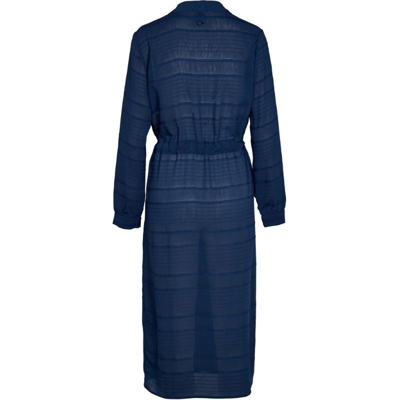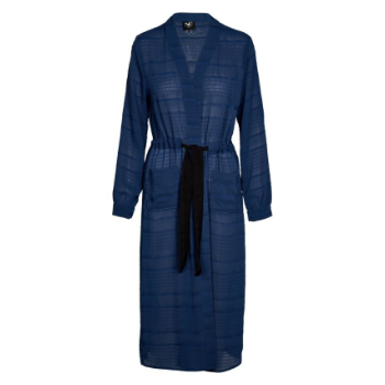 RECYCLED Exquisite and sustainable jacket in a beautiful, dusty blue colour made from 100% recycled polyester. The jacket has blue, discreet stripes in various widths, which give the fabric a pretty detail. In the waistline, there is a black tie-string that ensures a flattering silhouette and a great fit. Style this exquisite recycle jacket over your outfit together with a pair of boots or high heels, and complete your outfit with a small bag.