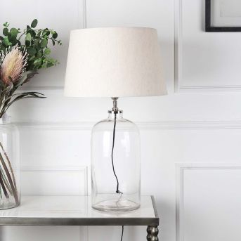 Simply timeless, this beautifully shaped gleaming glass base with silver fitting and a linen shade makes a real statement piece in any home. It will look great in a lounge, hall or bedroom either on its own or as a pair. Perfect for adding opulence to any room in your home.