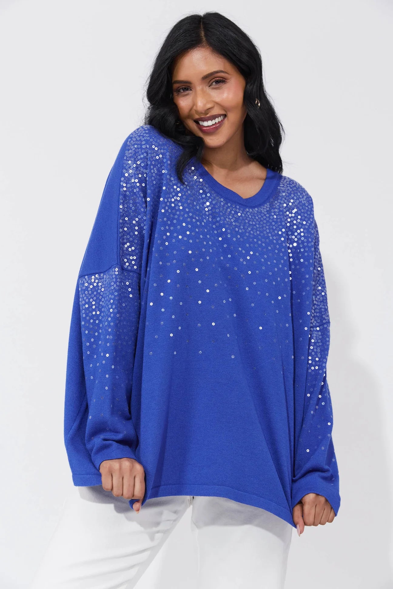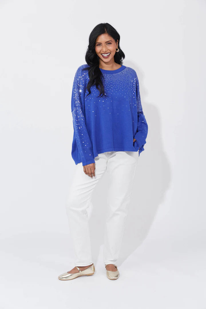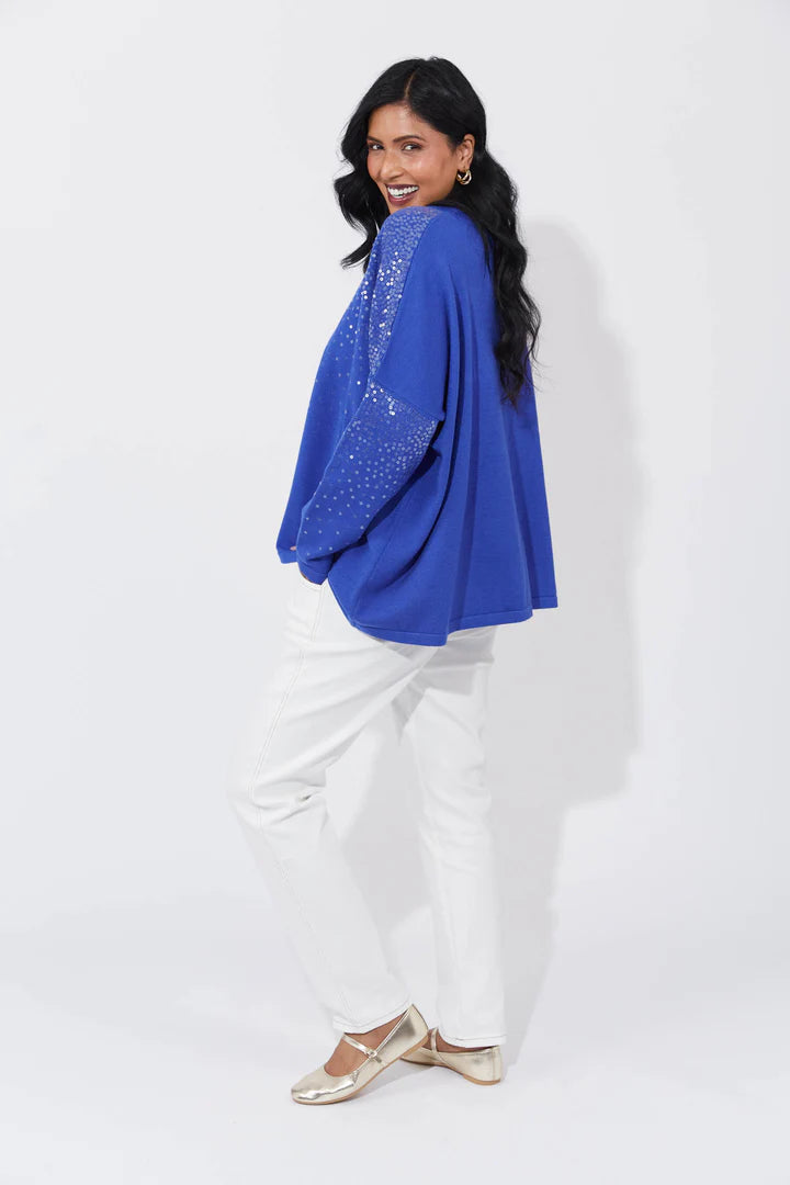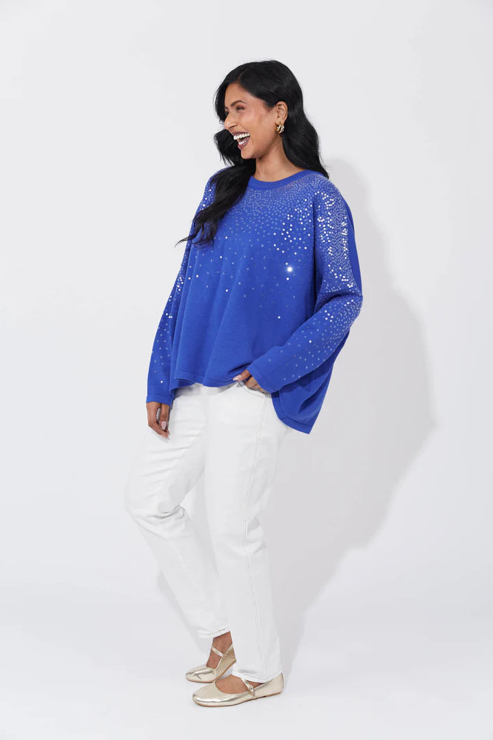 Add a touch of seasonal shimmer to your wardrobe with the Cancun Jumper, adorned with a dazzling array of sequins. This chic piece is crafted in a relaxed boxy fit with added stretch, ensuring cosy comfort on chilly winter evenings. Perfect for after-dark outings, style it by pairing it with a silky maxi skirt or tailored leather pants, ballet flats, and a sophisticated winter coat for a polished look.
