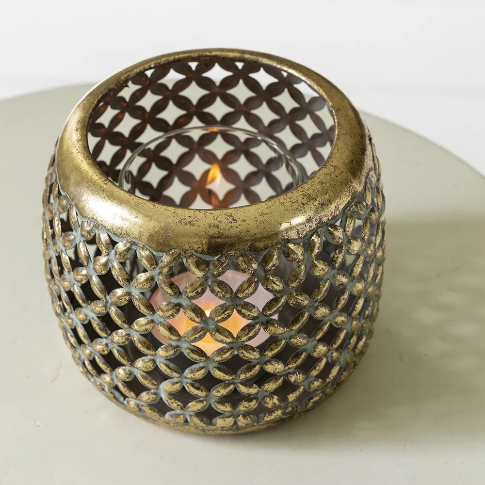 Dazzle your chosen room with a beautiful, pattered glow when you pop a tea light in this fabulous Pomme candle holder. These charming rustic metal votives are perfect for decorating a dinner party table setting or just having around the home to incorporate a warm and cosy atmosphere into your interior.