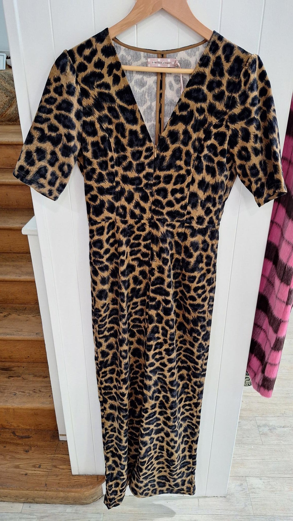 Our Clan Jumpsuit in this sumptuous leopard print design is a stunning piece to add to your winter wardrobe, in the beautiful black and leopard print velveteen fabric. With short sleeves, a V-neckline and zip front fastening, and the essential side pockets. The perfect statement jumpsuit for that special occasion.