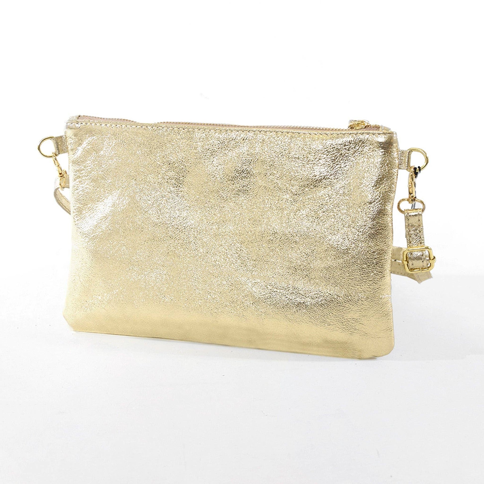 Cody Italian Leather Clutch Bag - Gold, Metallic