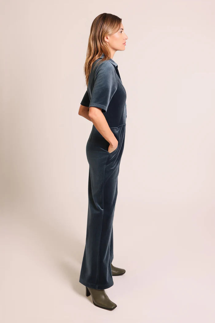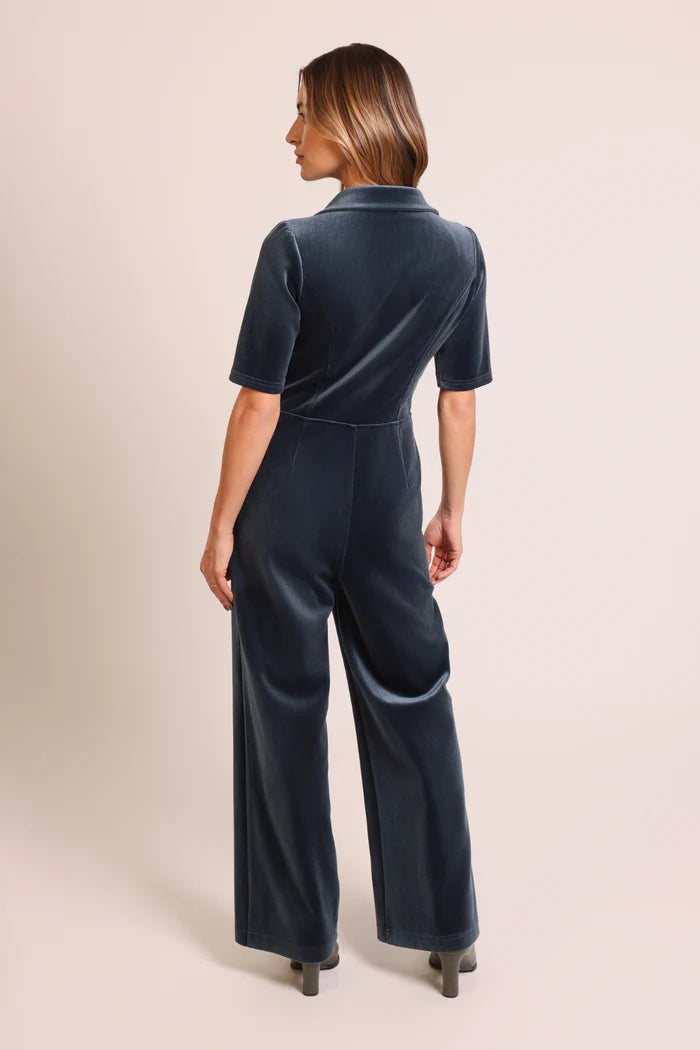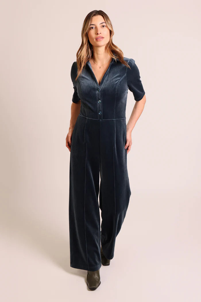 Our Avenge Jumpsuit is the perfect piece to add to your wardrobe, which we know you'll be reaching for all season. The stretch of this cord velvet makes the jumpsuit so classy, yet comfortable. With short sleeves, a shirt collar V-neckline and a button front fastening, and the essential side pockets. So chic in this dark navy blue.