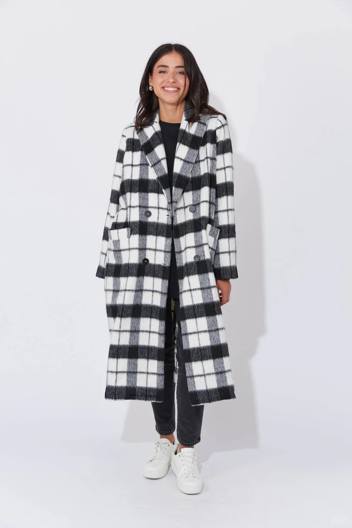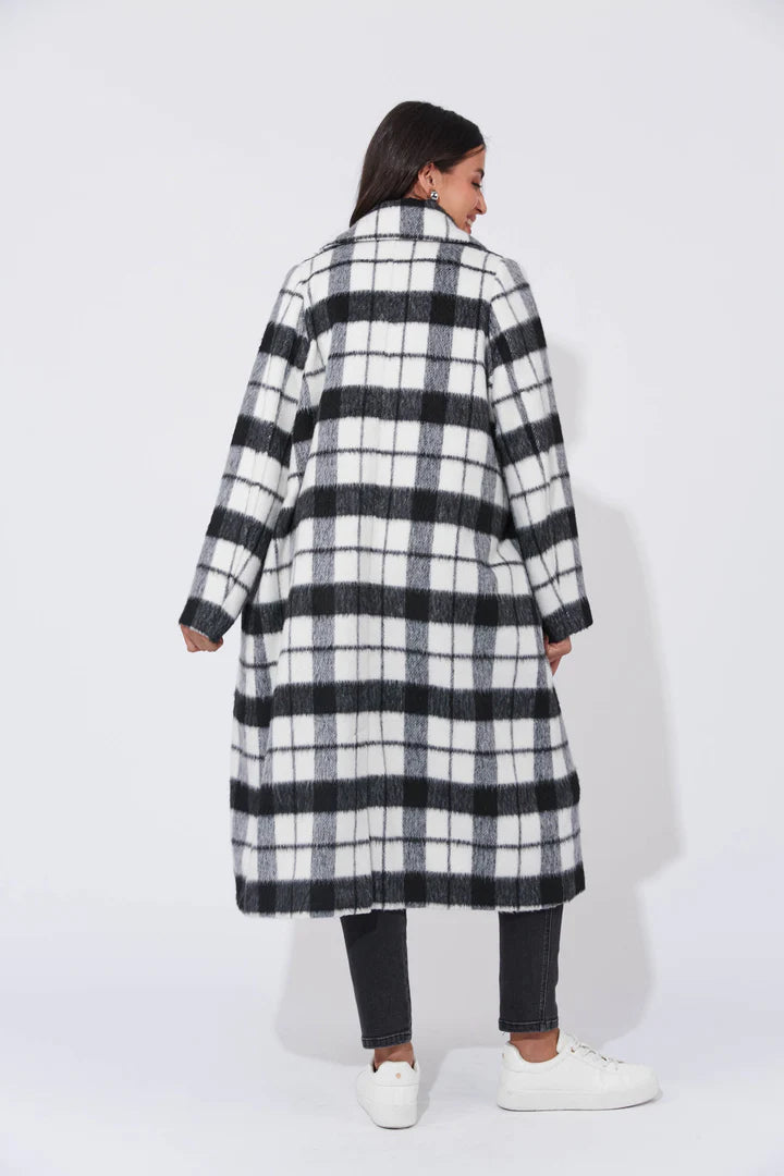 Ideal for everything from city strolls to upscale events, the Daytona Coat brings a touch of refined winter fashion to your wardrobe. Designed for a polished and sophisticated appearance, this coat combines timeless elegance with modern charm. The lapel and double-breasted silhouette lend it a classic appeal, while the soft plaid pattern adds a fresh, contemporary edge. Its oversized fit ensures you can comfortably layer thicker pieces underneath, making it as practical as it is stylish.