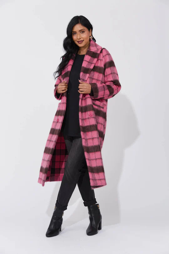 Ideal for everything from city strolls to upscale events, the Daytona Coat brings a touch of refined winter fashion to your wardrobe. Designed for a polished and sophisticated appearance, this coat combines timeless elegance with modern charm. The lapel and double-breasted silhouette lend it a classic appeal, while the soft plaid pattern adds a fresh, contemporary edge. Its oversized fit ensures you can comfortably layer thicker pieces underneath, making it as practical as it is stylish.