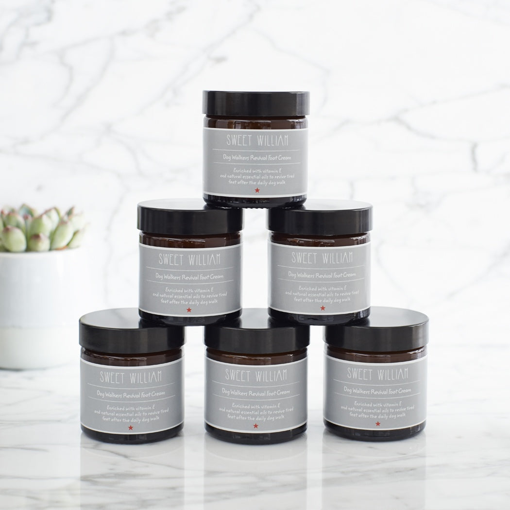 Our Dog Walkers revival foot cream is enriched with vitamin E and natural essential oils to revive tired feet after the daily dog walk.