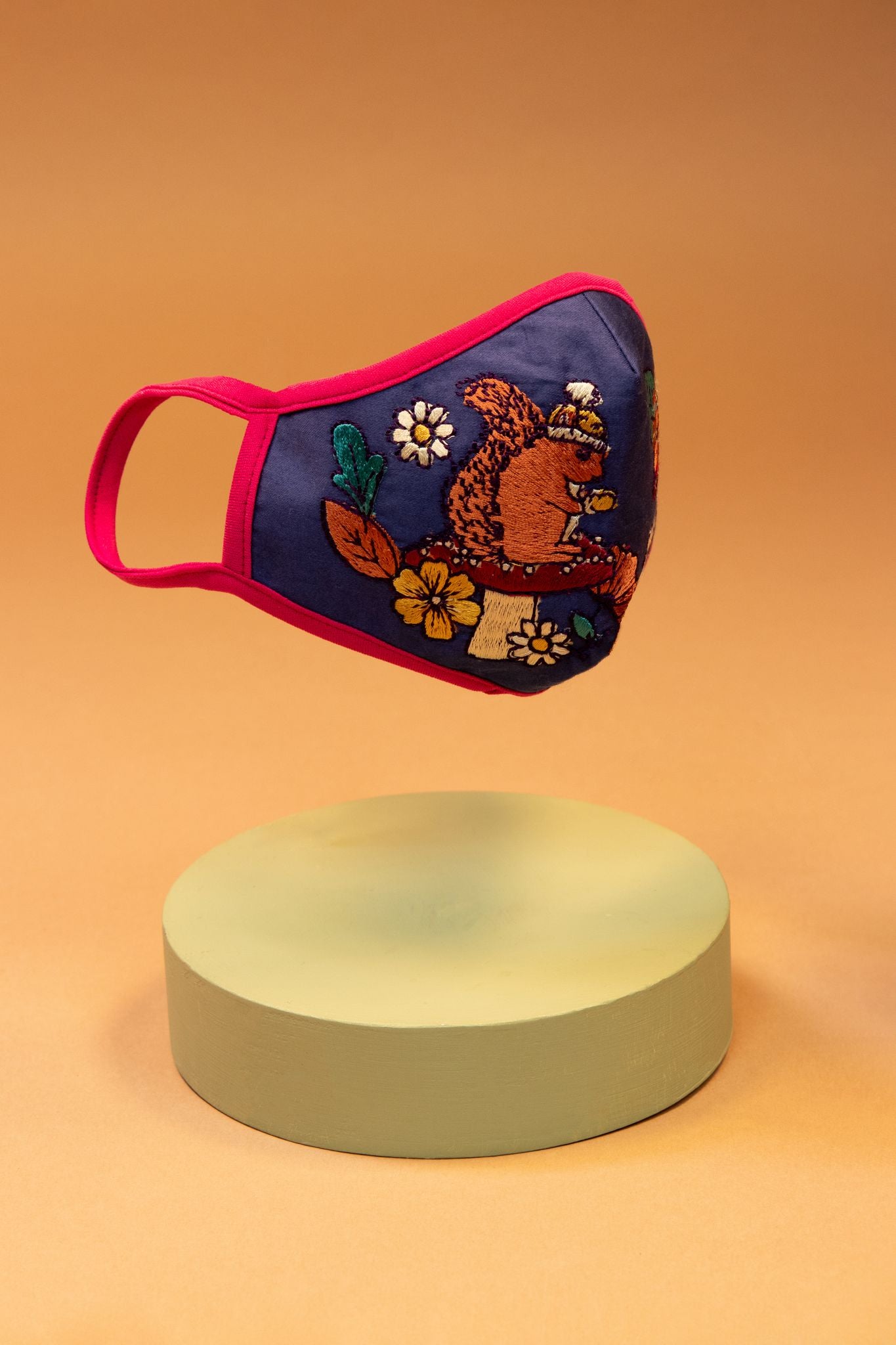 Embroidered Face Mask Floral Squirrel