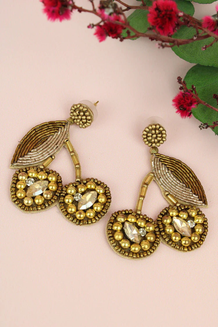 Bestselling Beadwork - statement gold bead & gem cherry earrings.