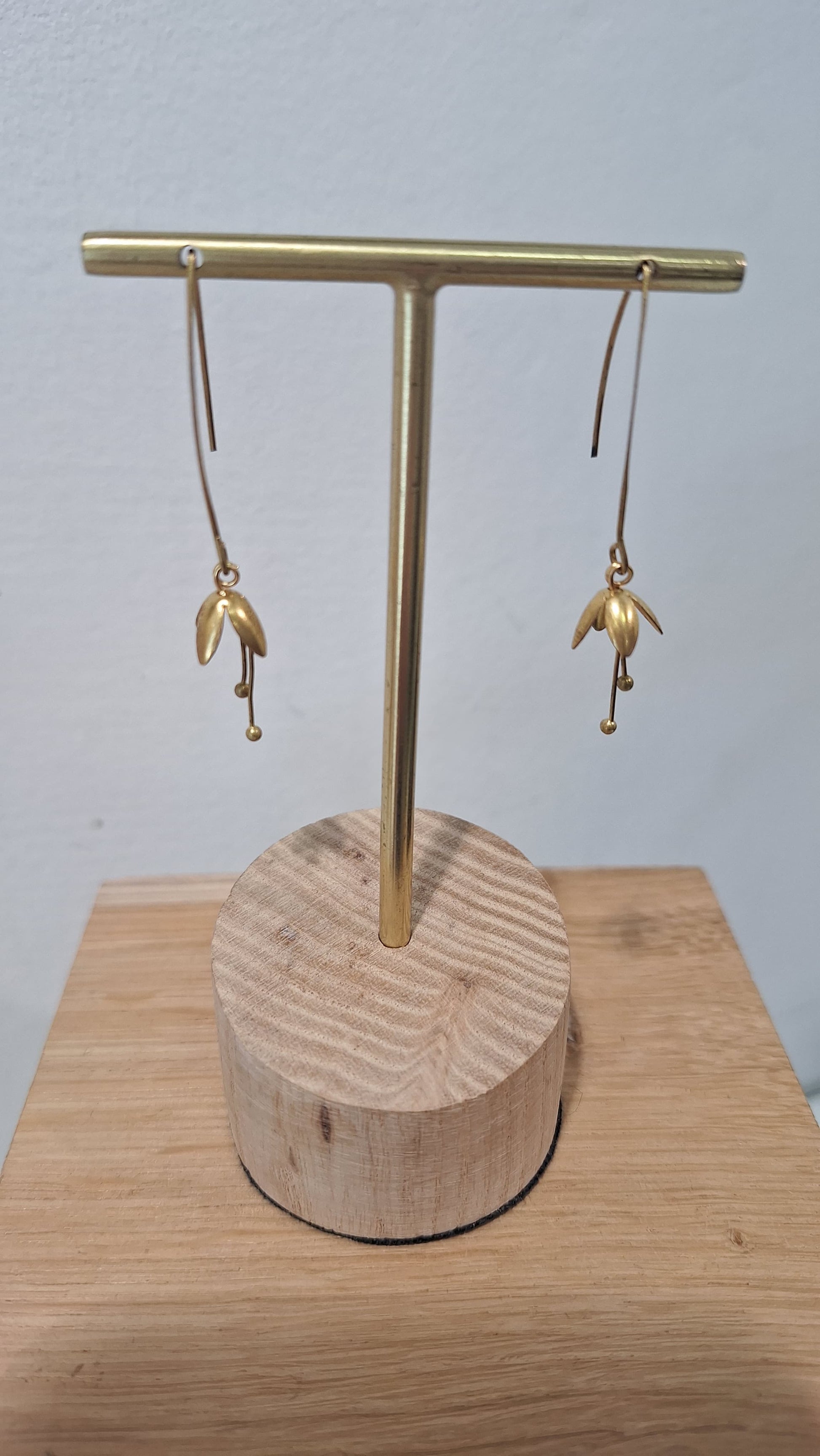 Delicate gold snow drop earrings.
