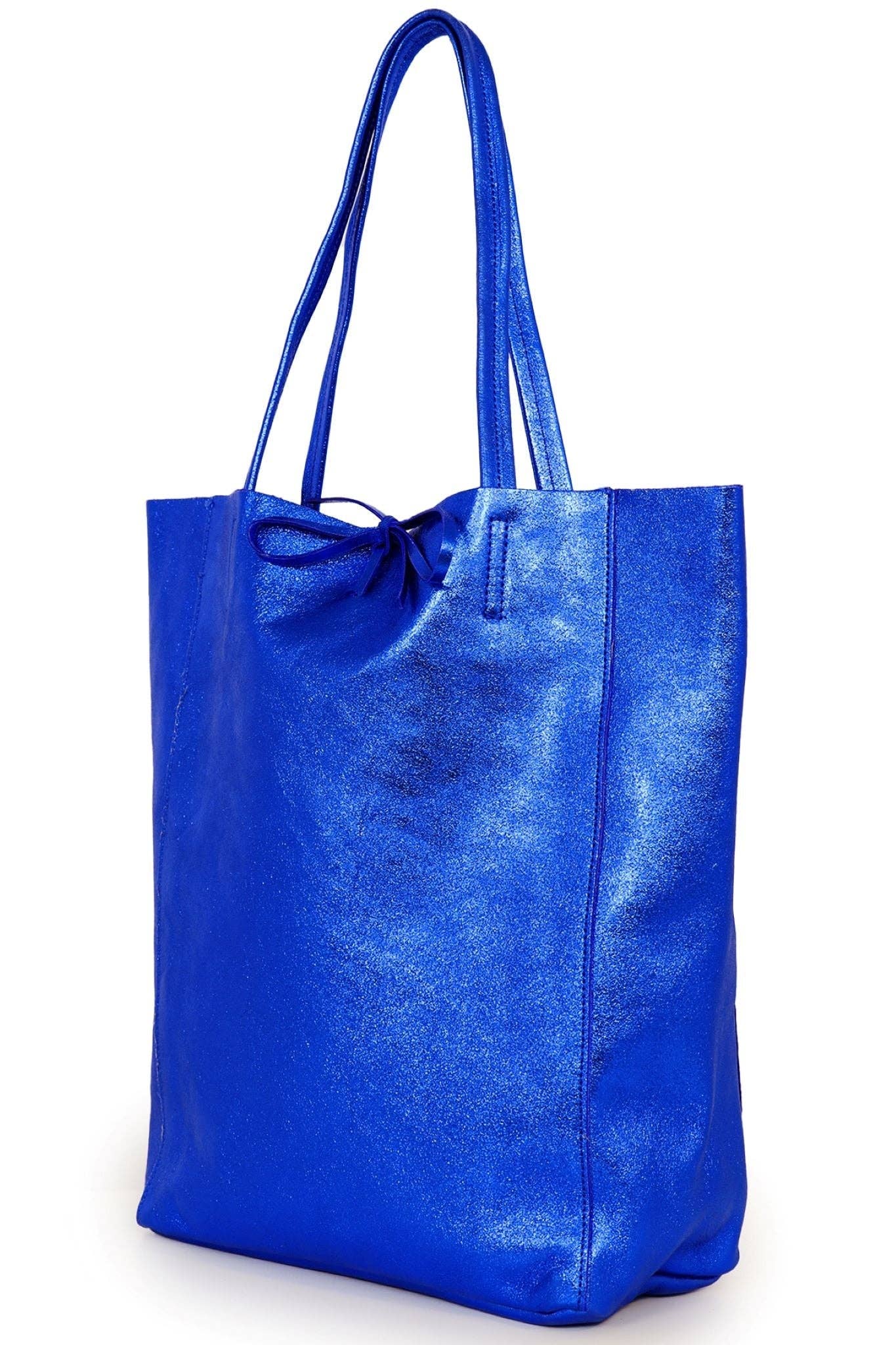 * Italian Leather Tote Bag in Metallic Blue