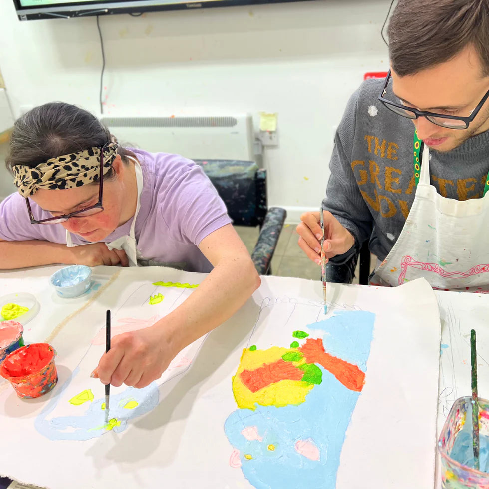 Each artist drew their favourite animals, dressed in their best party outfits, embracing one another.