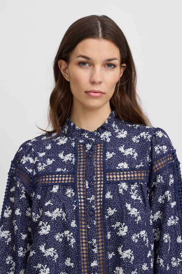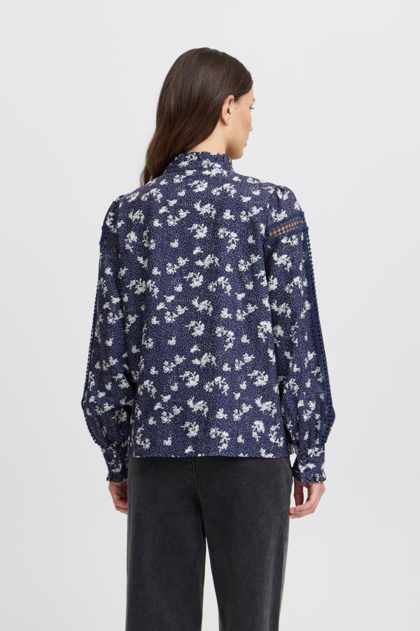 IRFLORENTINA Shirt in Blue with White Flowers