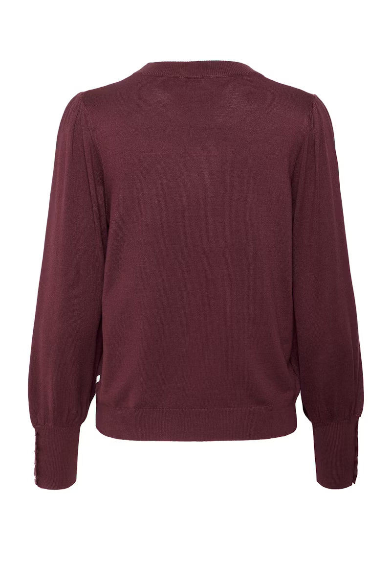 Women's pullover sweater with relaxed fit and crew neckline. Features long balloon sleeves and button detailing at the cuffs. Designed for versatile wear and all-day comfort, ideal for casual or work outfits.