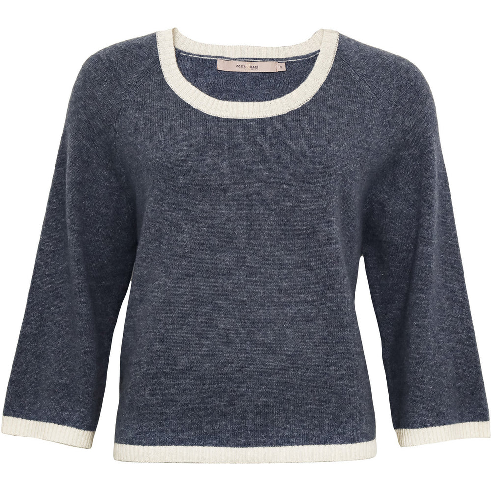 Super cute pullover with a slightly shorter sleeve and a round neck. Available in grey with off-white edges.