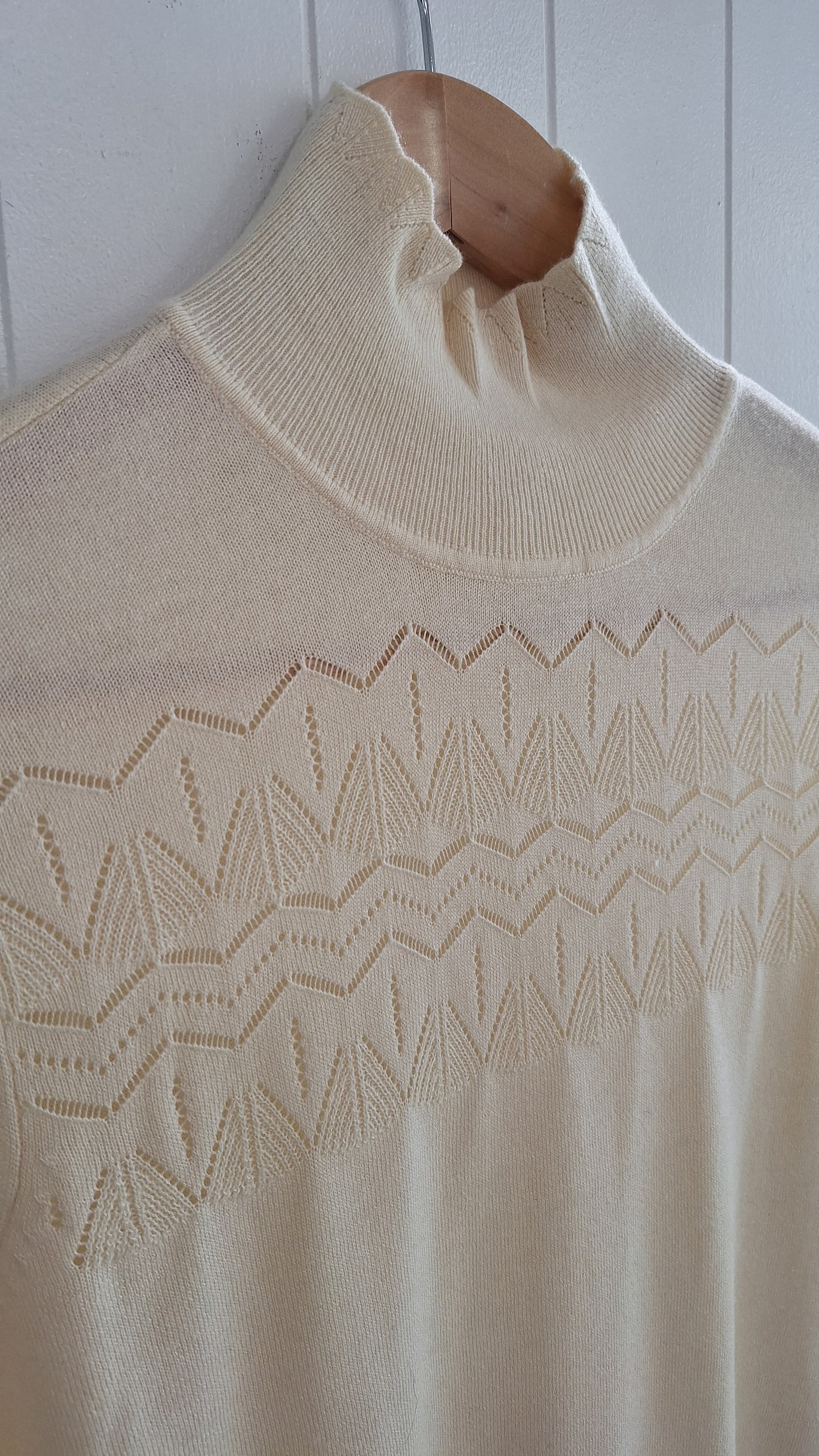 Kul Pointelle High Neck Cream Sweater/Jumper