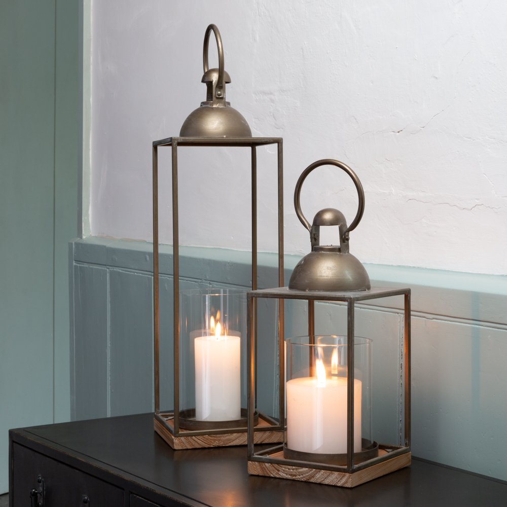 Whether you choose to display this large dome lantern alone or alongside the smaller version, you can be sure to create a striking feature and one that will provide your home or garden with a subtle touch of class. With an industrial look about it, this large candle holder contains a glass cylinder for protecting the flame whilst being built on a wooden base and constructed within a metal casing. Perfect for combining contemporary chic with an antique look.