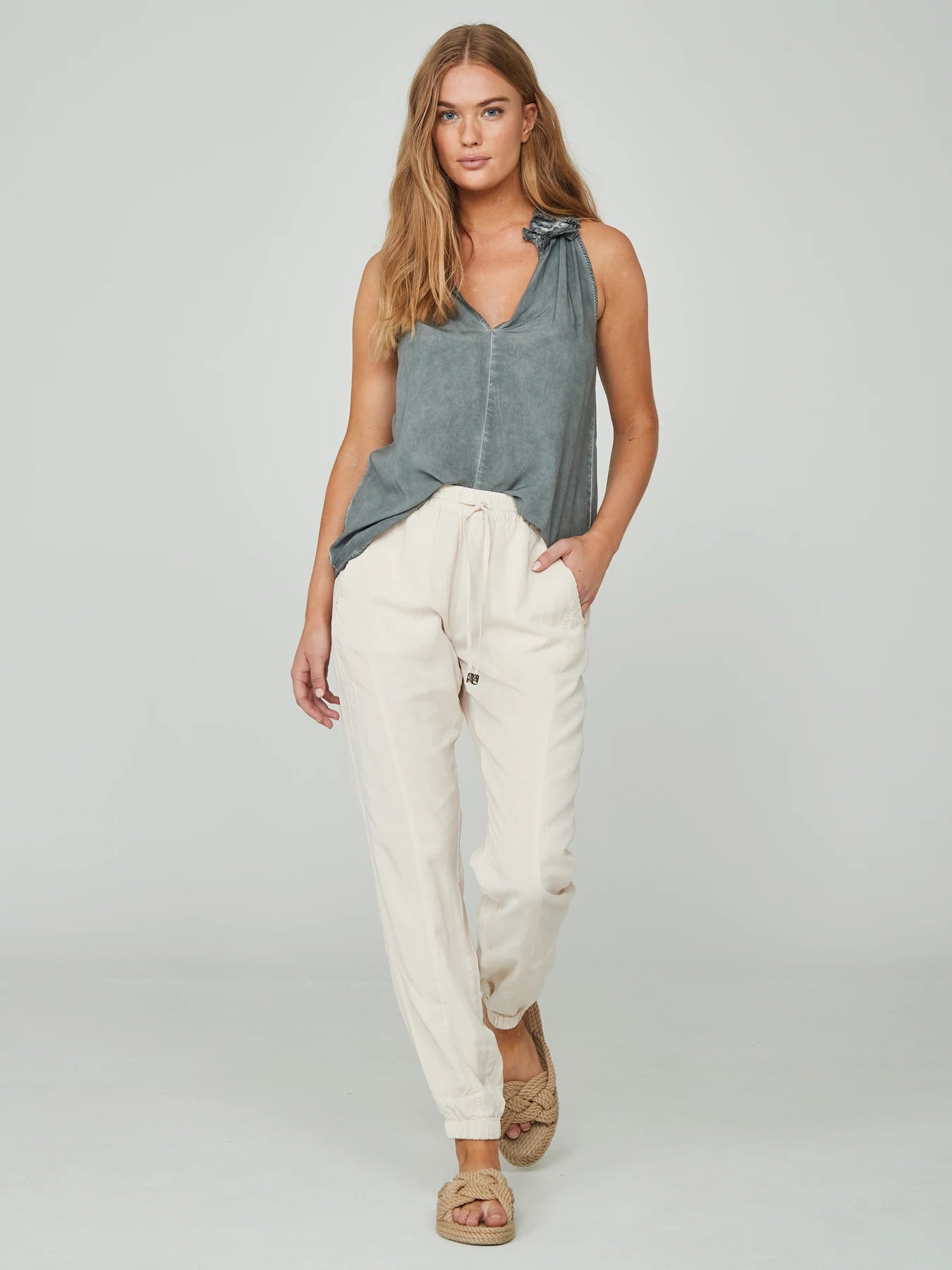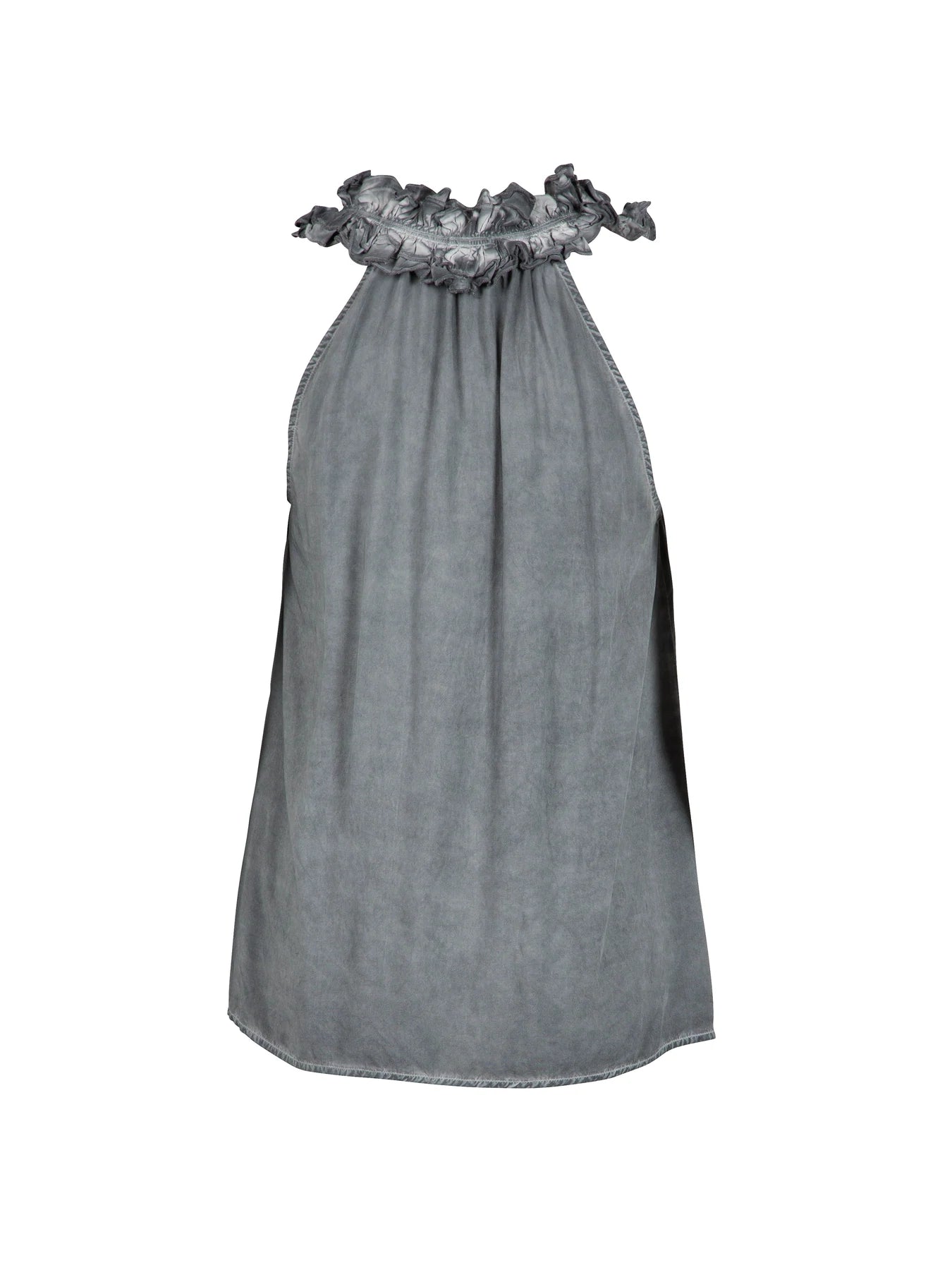 Beautiful top with a cold-dye look made from a comfortable and lightweight viscose fabric. The top has a loose fit with a deep V-neckline with lovely ruffle trim along the neck. Style the top with the LIE trousers and a pair of sandals for a cool and casual outfit, or combine it with the NOLA LAVA trousers for a more feminine look.