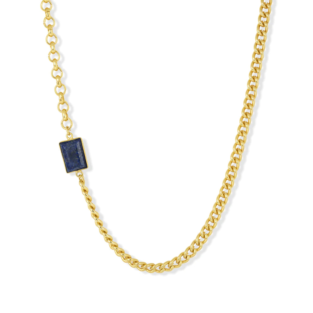 Chunky off-set chain necklace with rectangle set lapis lazuli gemstone