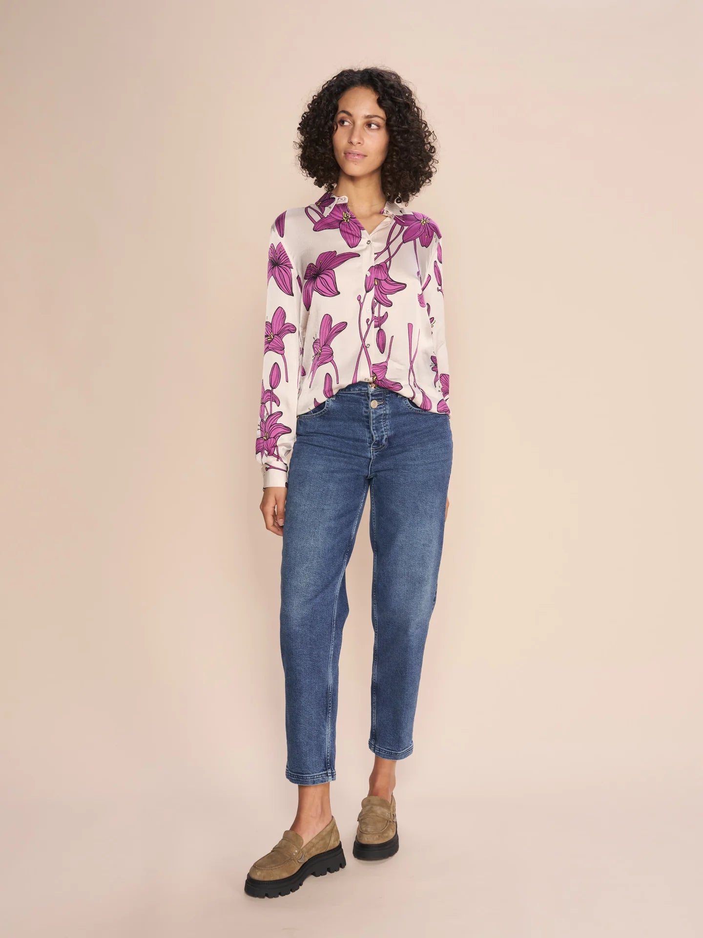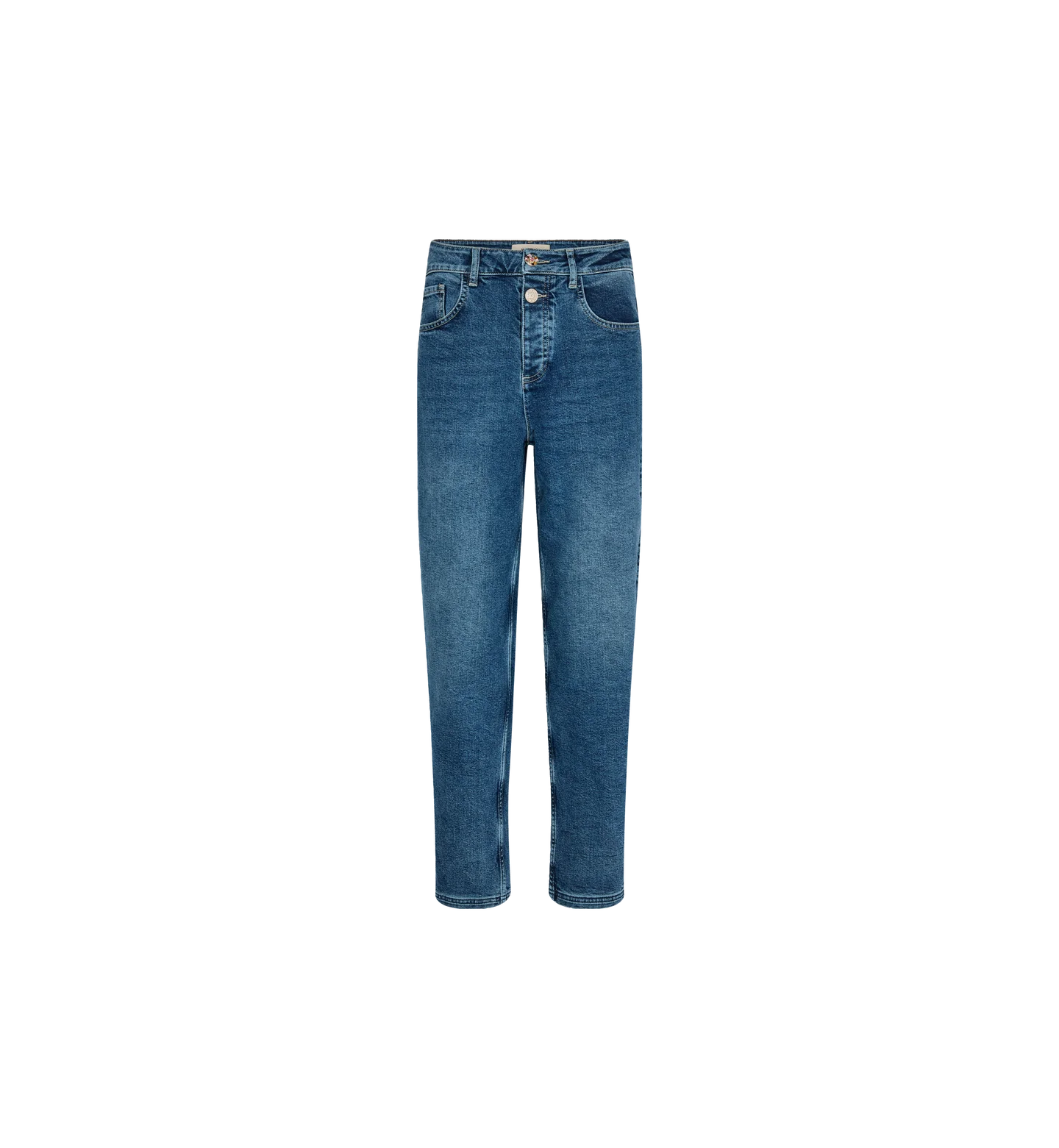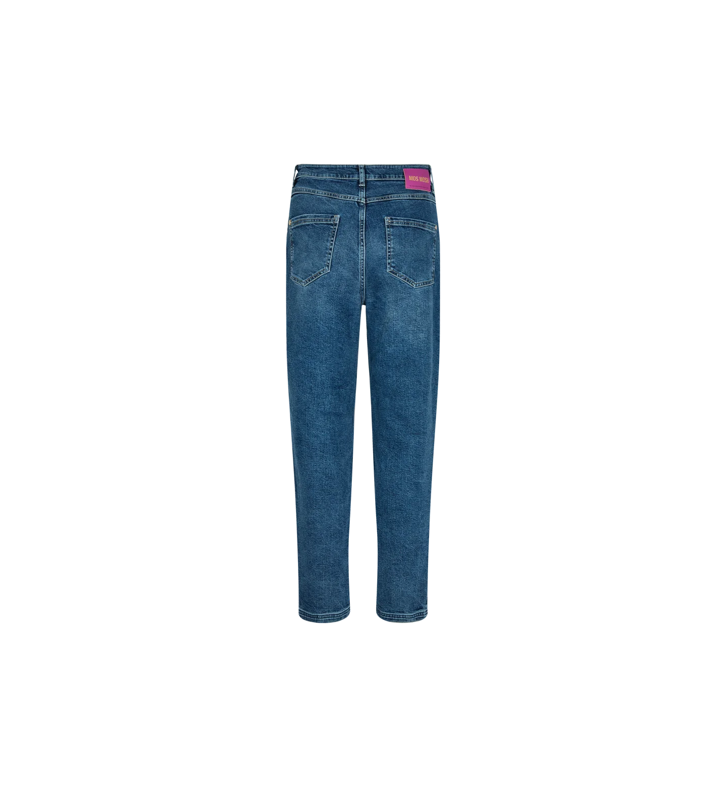 These jeans have such a cool mom fit (barrel) with a high waist. They are crafted from a cotton blend and finished with a button closure, feminine buttons, and a pink leather badge at the back. We would wear them with a trendy tucked-in tank top or an oversized shirt together with high heels.