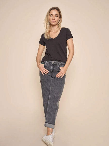 Trendy grey denim jeans, cut in a straight fit with a high rise. These jeans are crafted from a BCI cotton blend and decorated with pockets, MOS MOSH detail at the front pocket, and MOS MOSH embroidery in the lining. Wear with a statement tee to complete the rock’n’roll look.