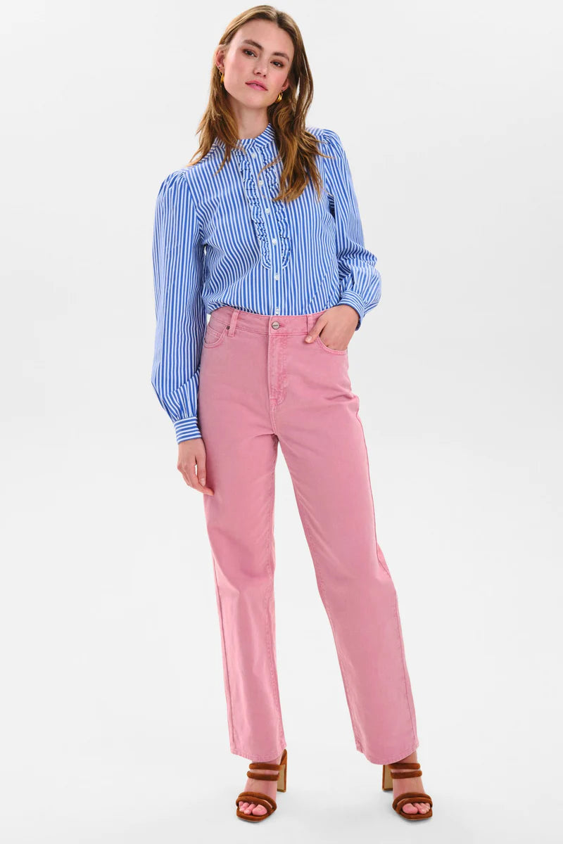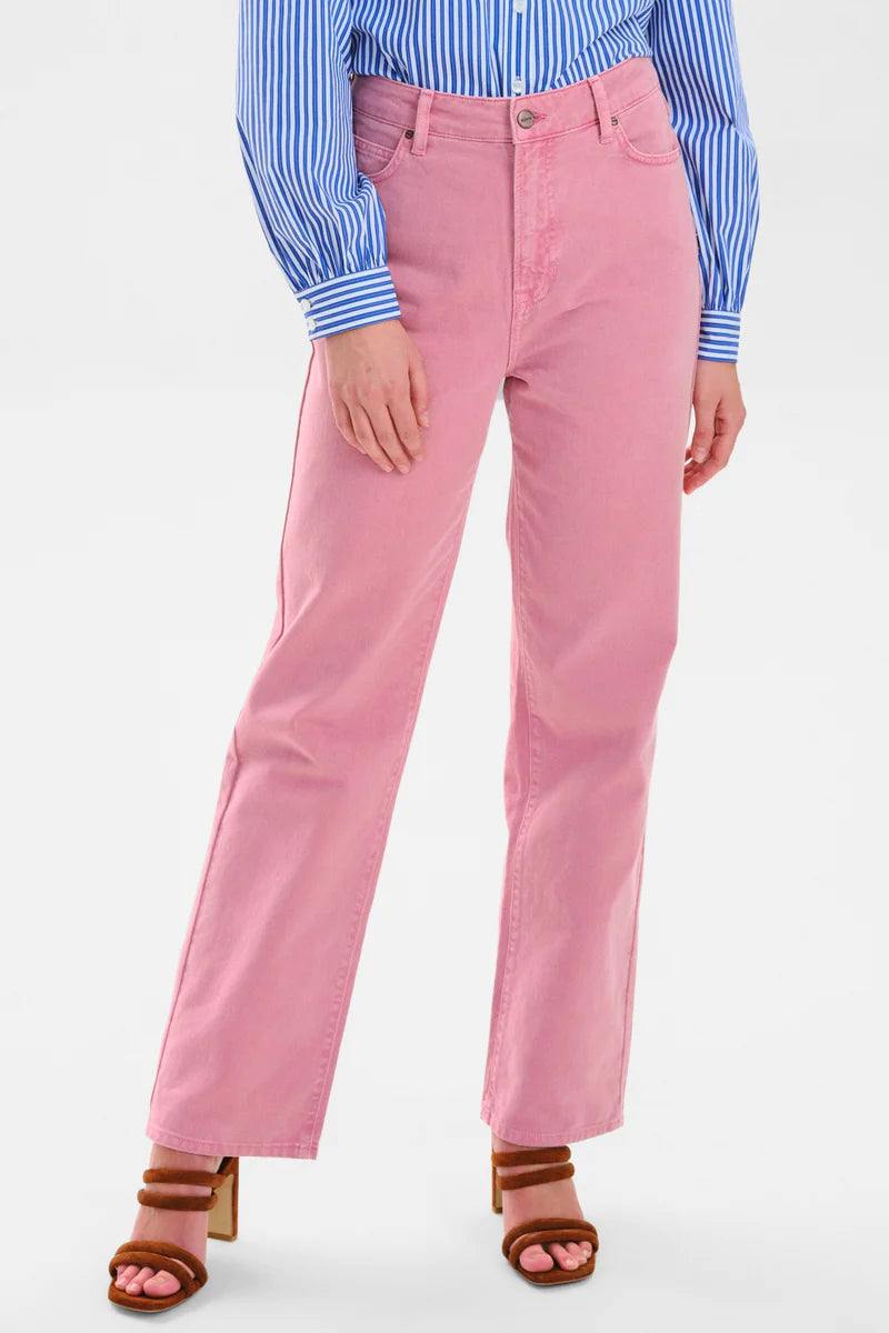 A high waisted wide legged jean in delicate lilac. A perfect Autumnal piece for the wardrobe. Add dark or pale colours to accessorize. Trainers or ankle boots.