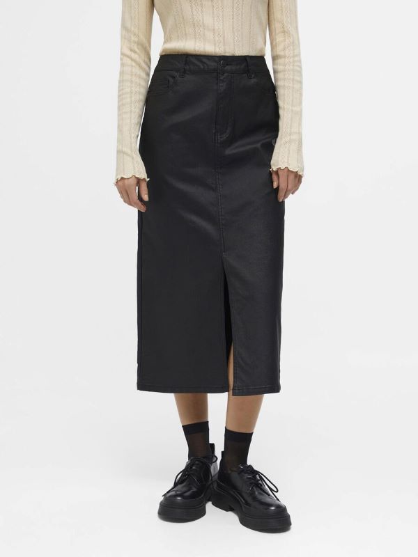 Mid waist midi skirt with shiny coating - Belt loops - 5-pocket design - Concealed zip fly with rivet button fastening - Slim fit - Made with more responsible fabrics