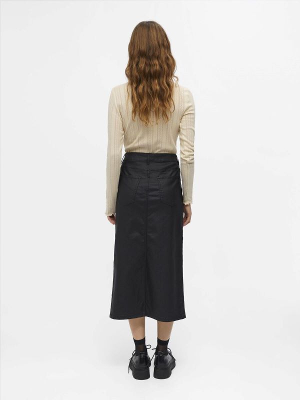 OBJNAYA Coated Midi Skirt in Brushed Nickel