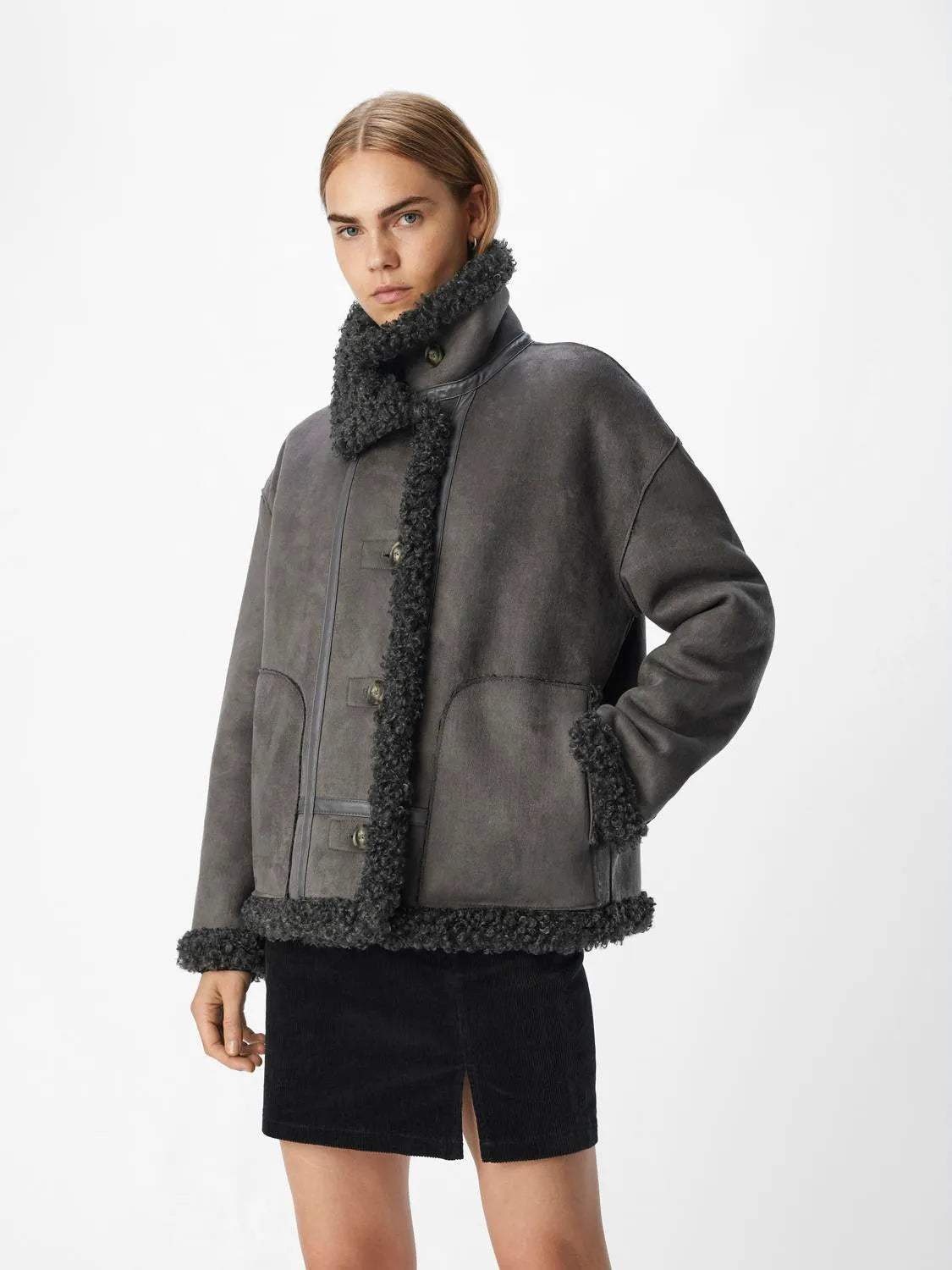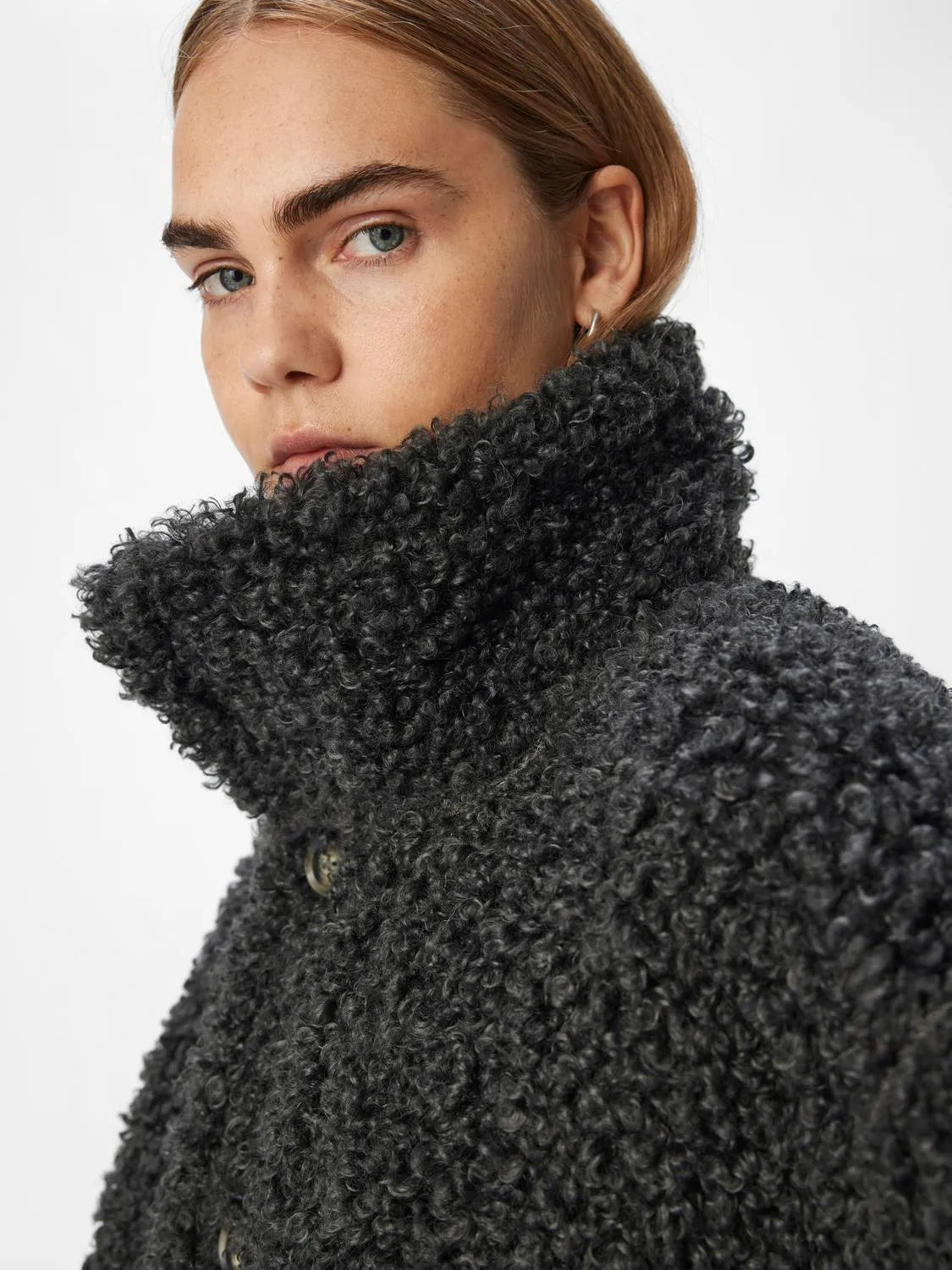 Jacket with High Neck, Long Sleeves, Button fastening and Side pockets.