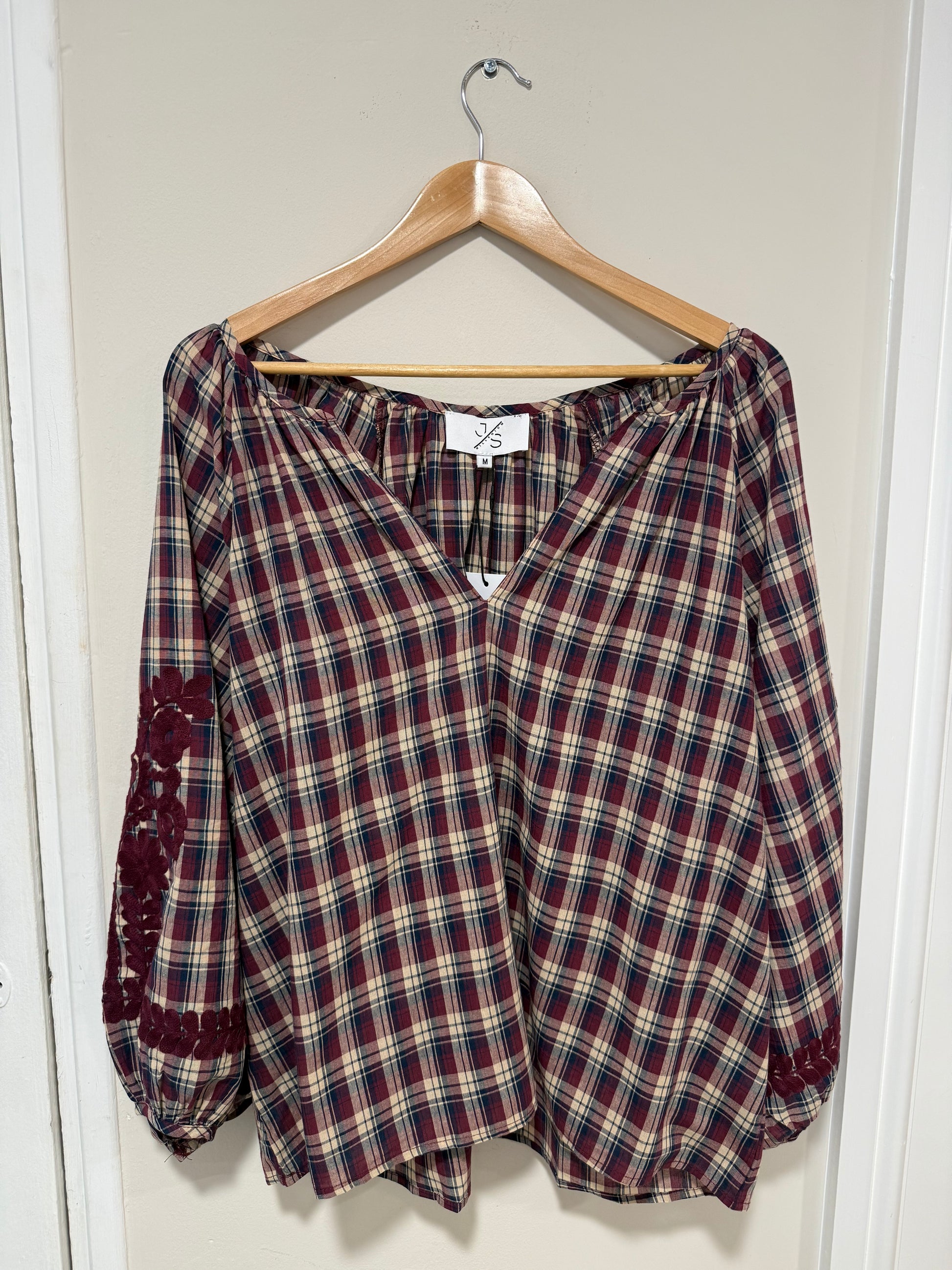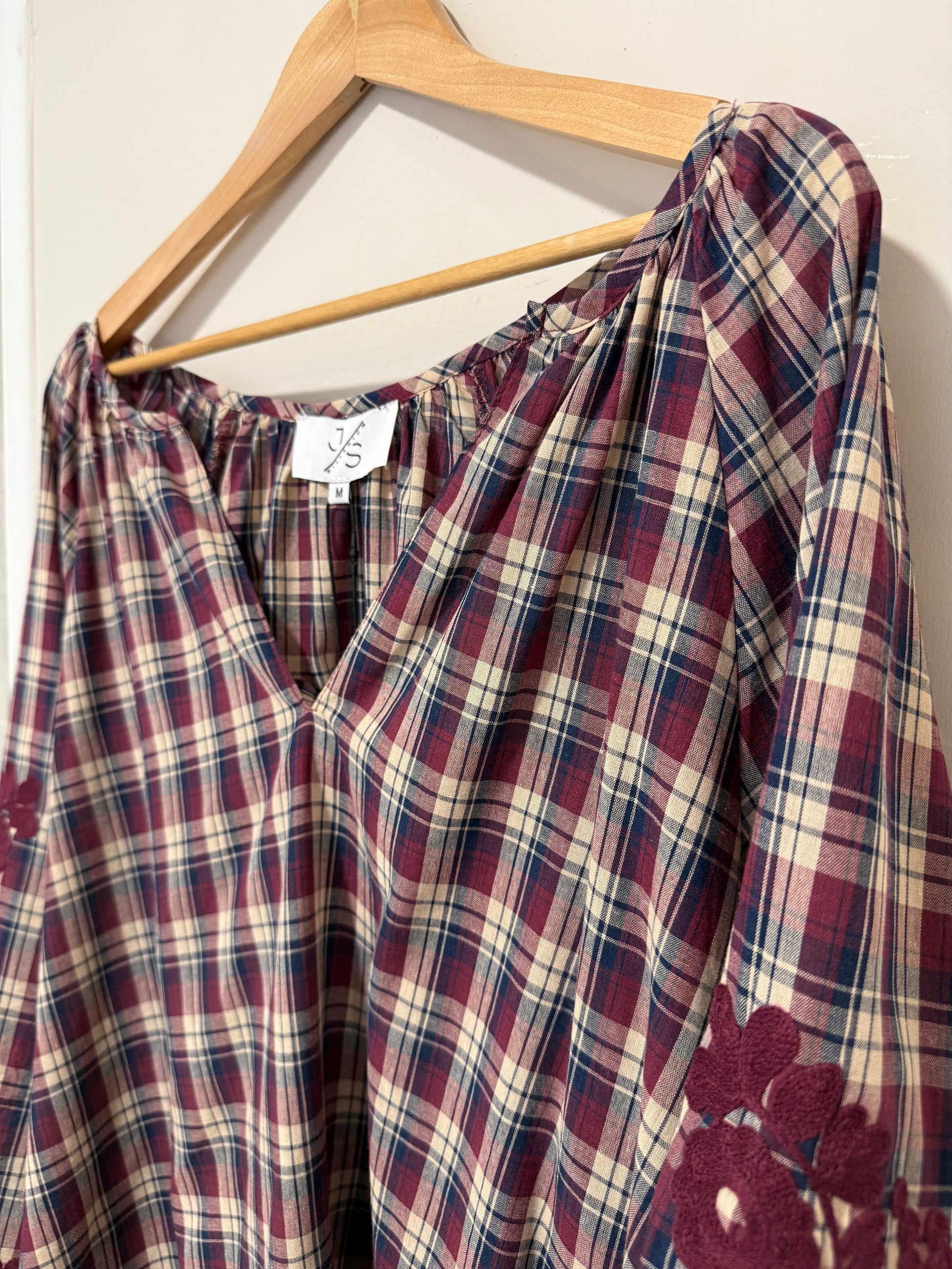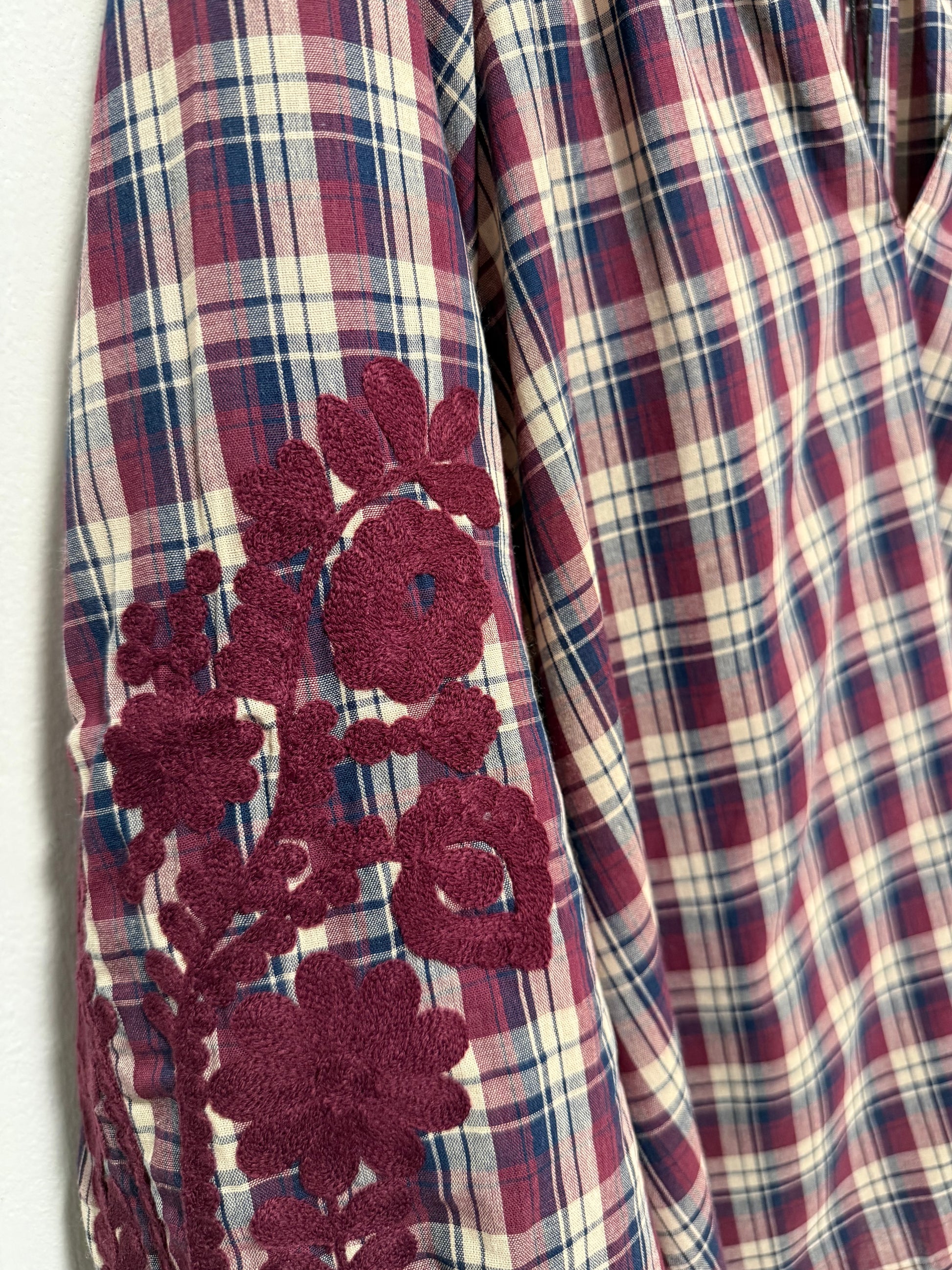 Plaid Shirt with Embroidery Detail on Sleeve