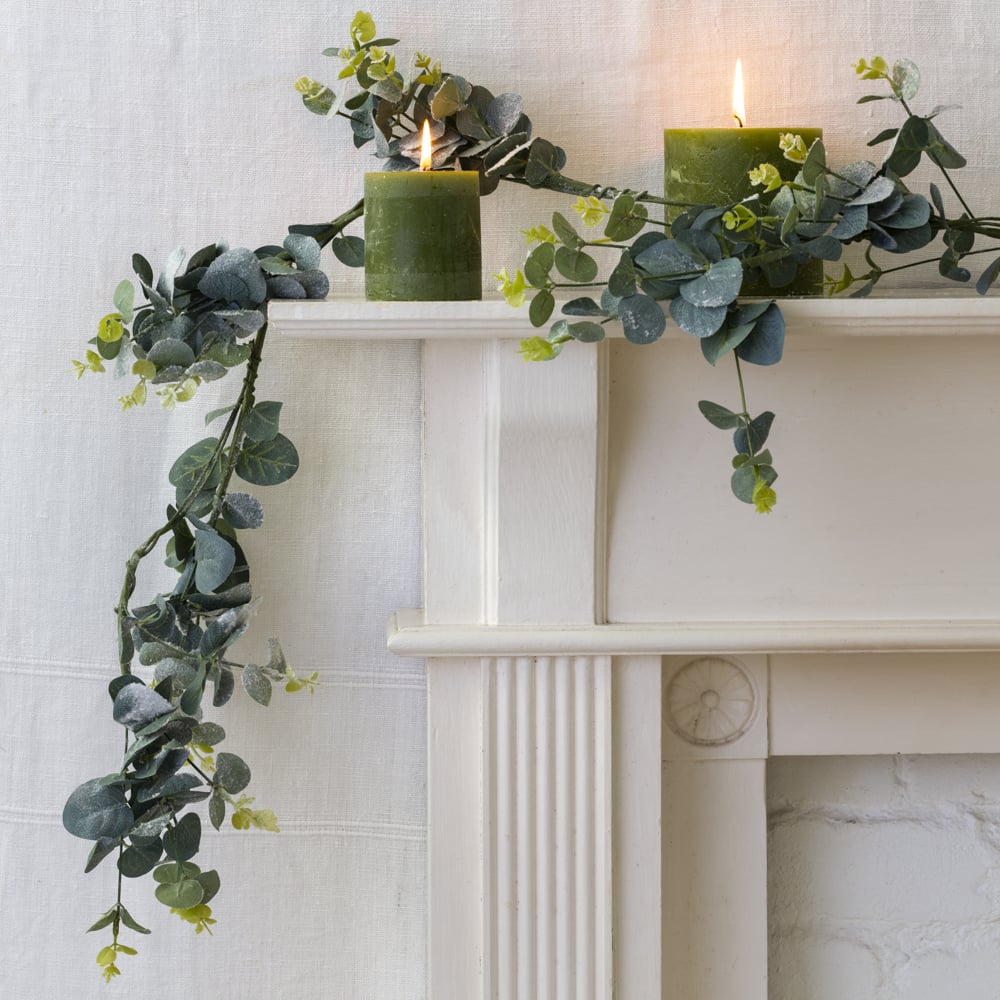 Frame your mirror or fireplace with this beautiful Frosted Eucalyptus Garland. Perfect for decorating your home, this delicate sprig is ideal for layering with others to create an elegant and textured festive arrangement to adorn any interior!
