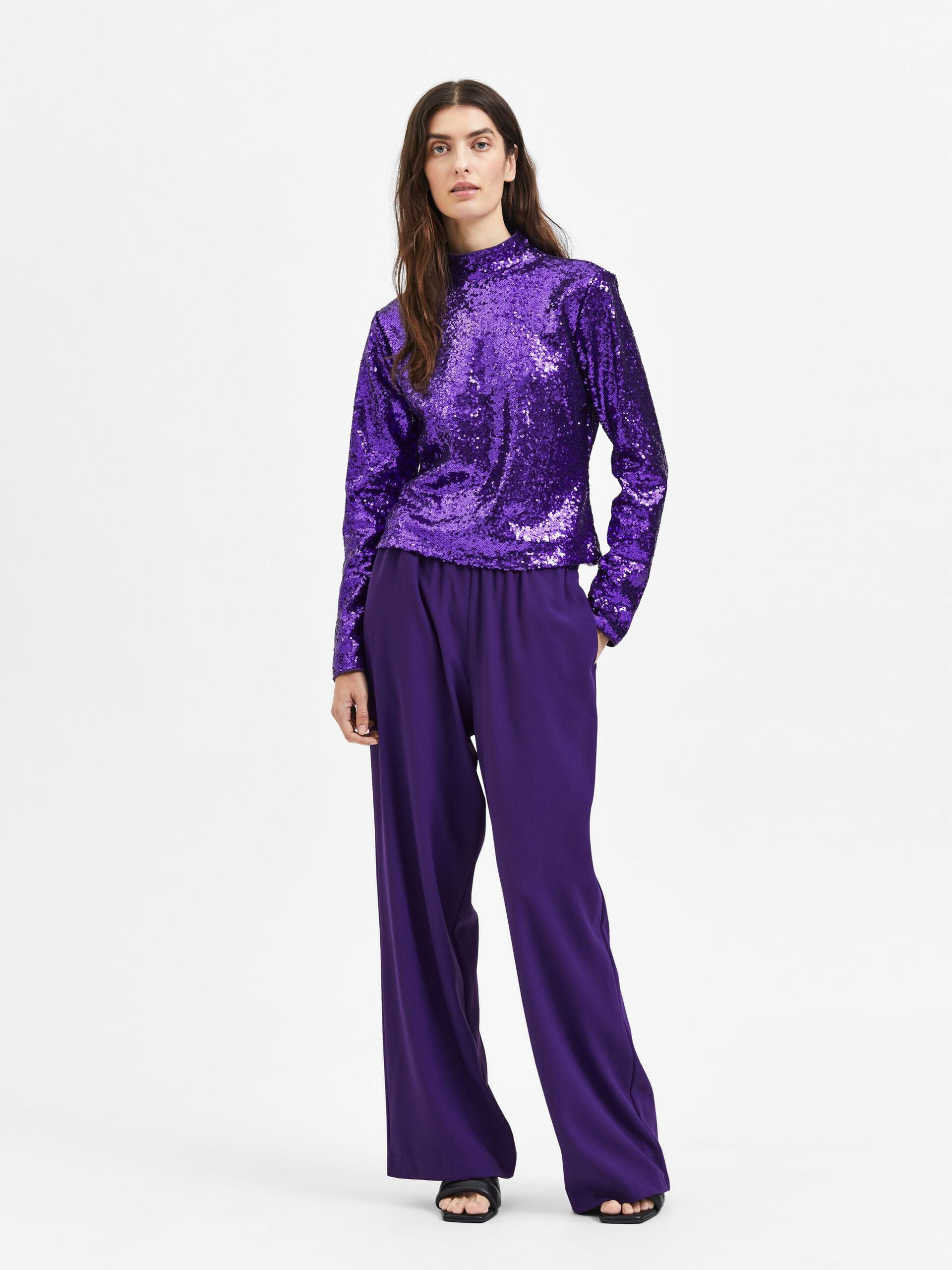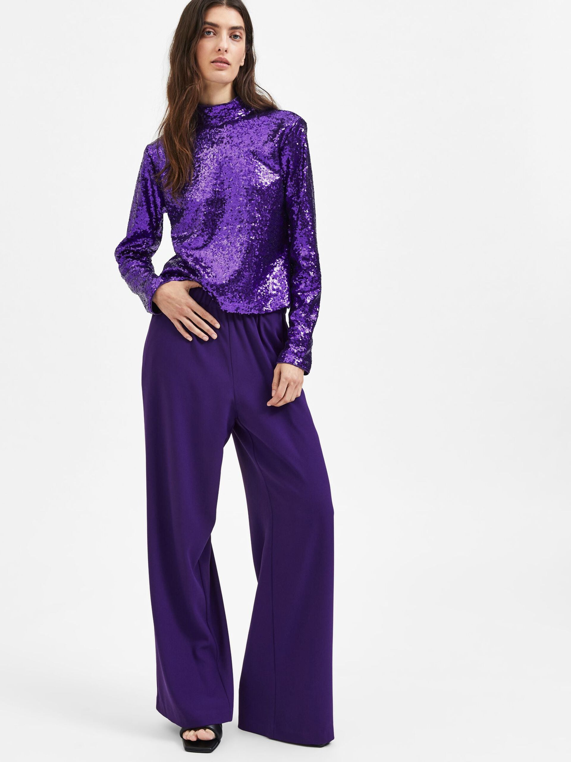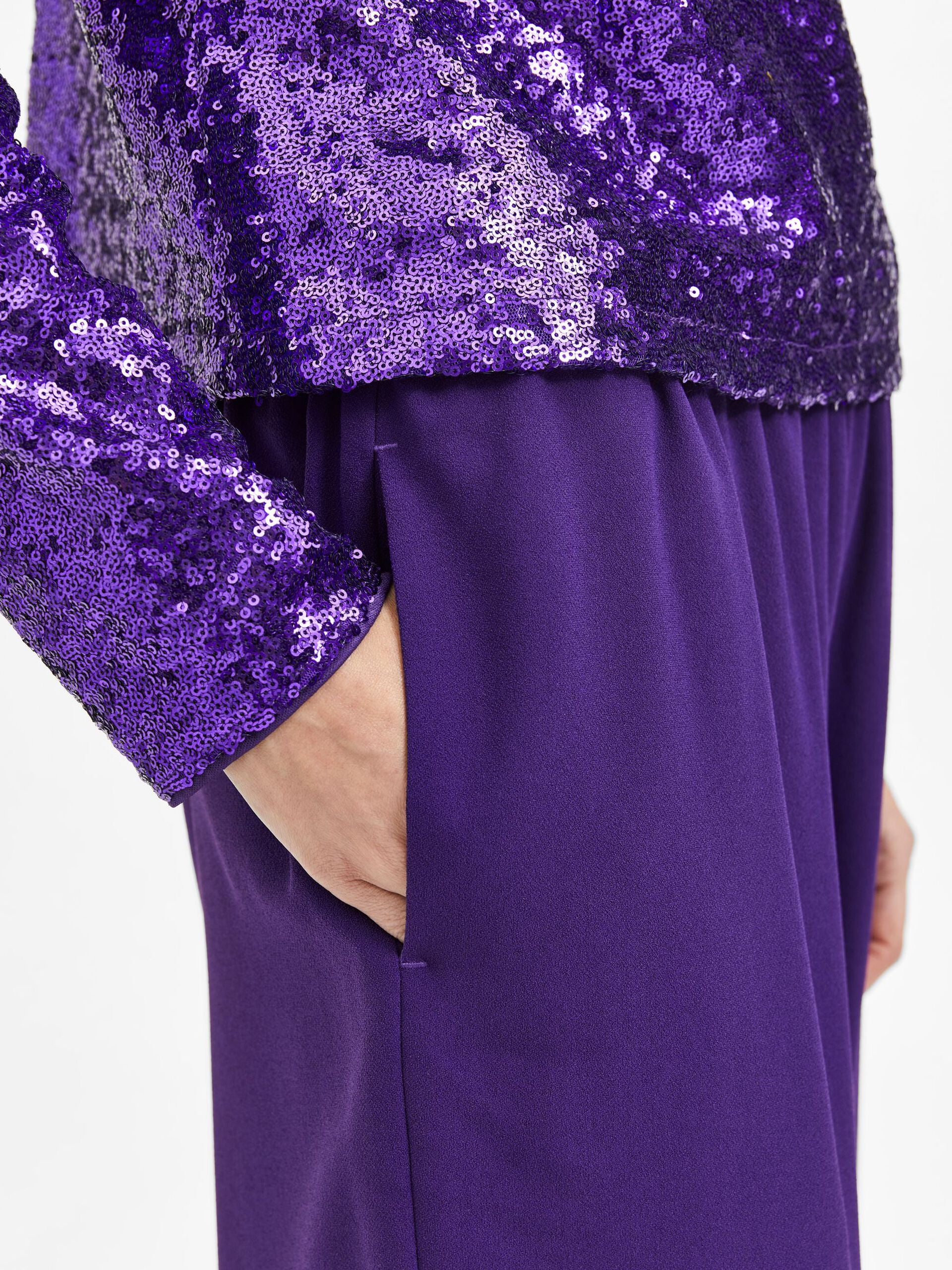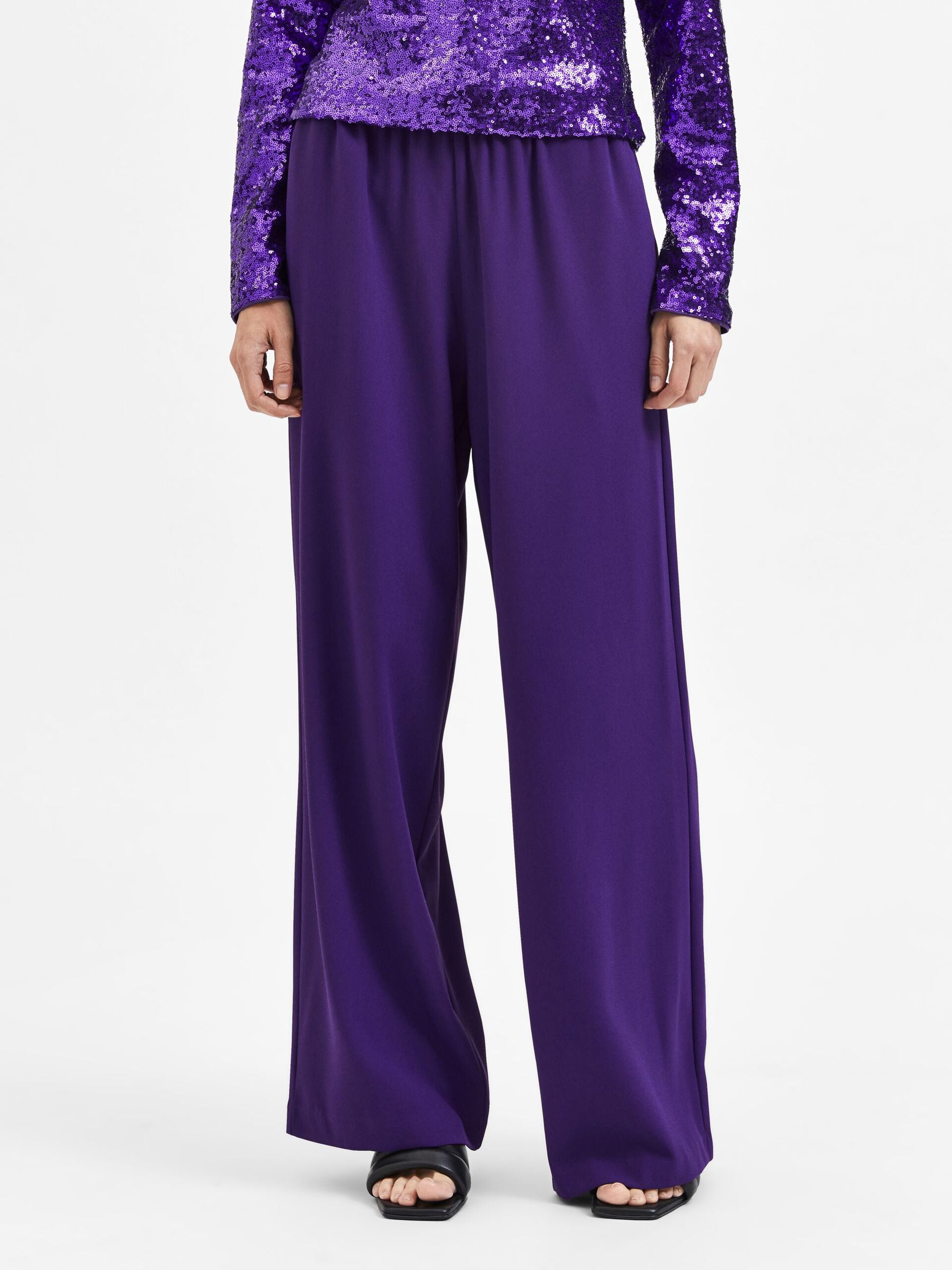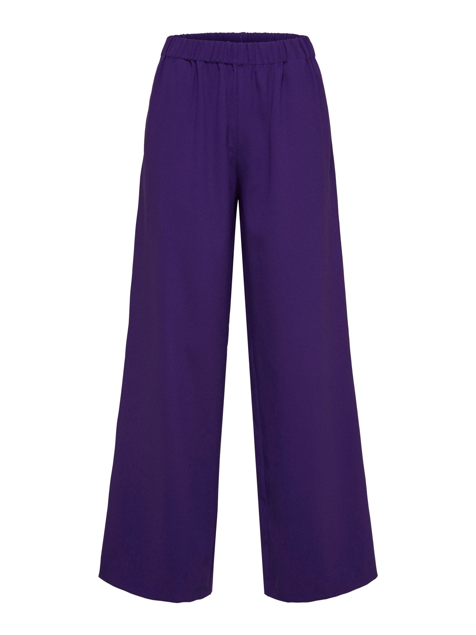 Comfortable wide trousers with elastic waistband. Pockets in side seam. Mid waist. Relaxed fit with room to move. The model is 177 cm and wears a size S/36
