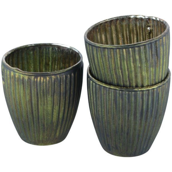 Ribbed Beaker Votive Small Dark Green 7 x 7cm