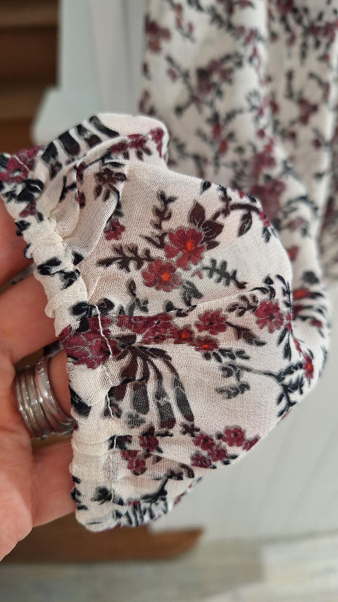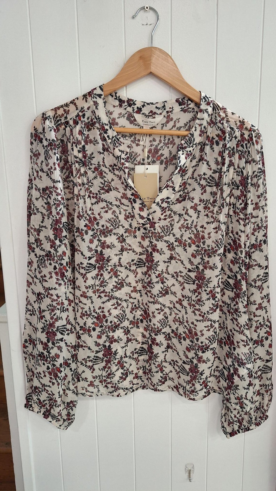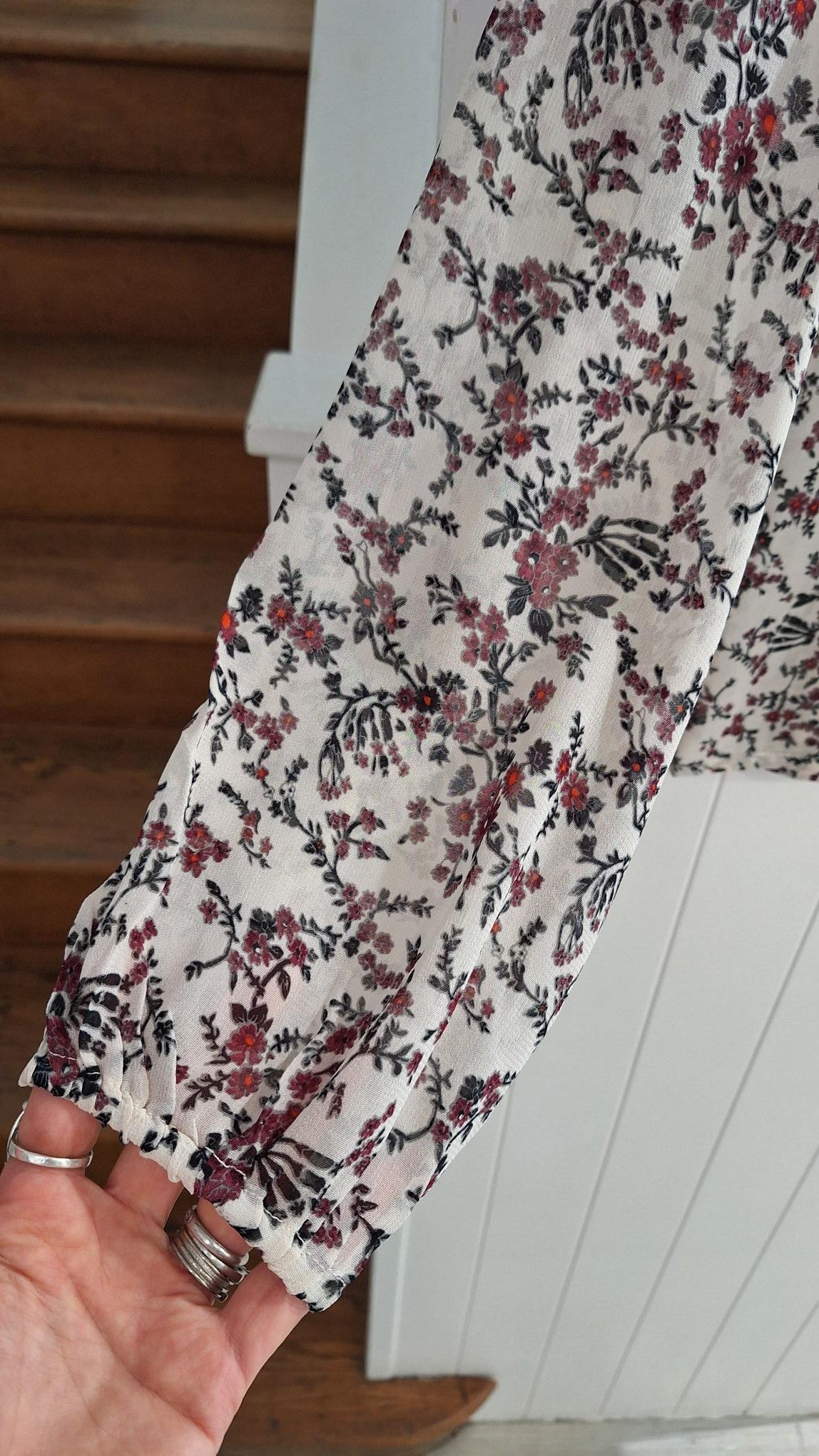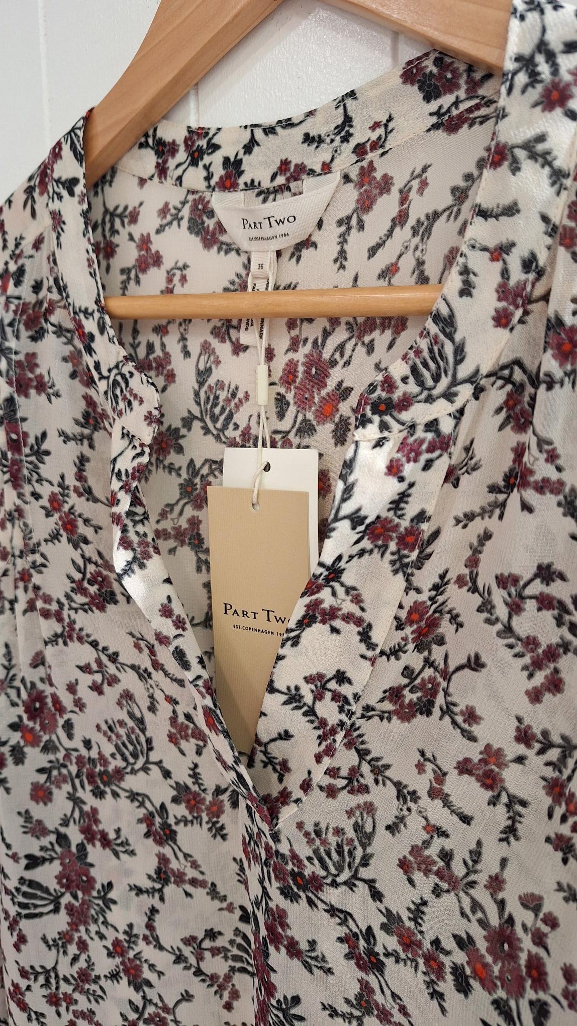 The model is 178 cm tall and wears a size 36. This classic floral shirt features fine pleats at the front, creating an elegant and timeless look. The slightly loose fit and wide sleeves adds a pretty romantic twist, perfect for both everyday wear and formal occasions. Style it with jeans or tailored trousers.