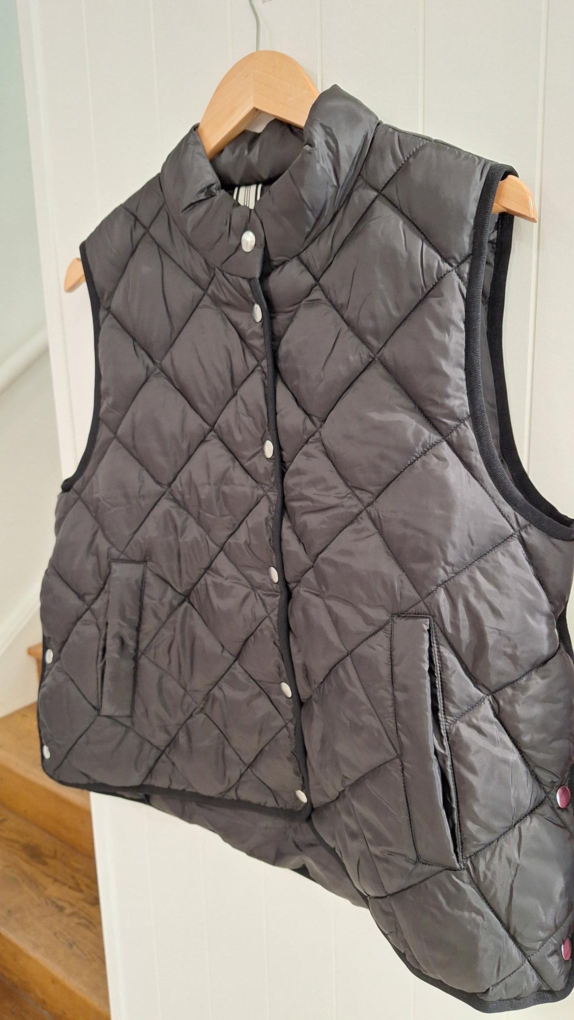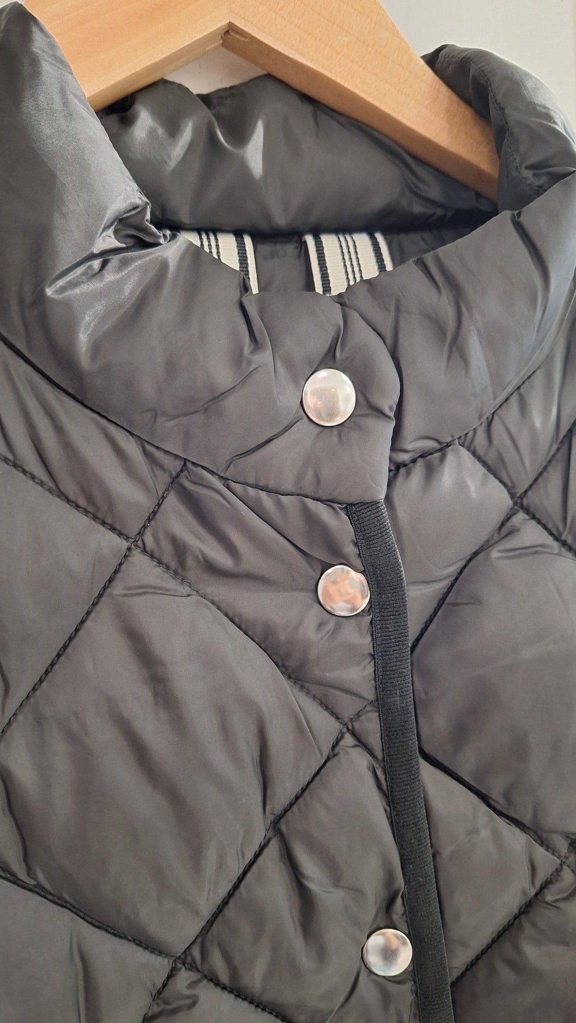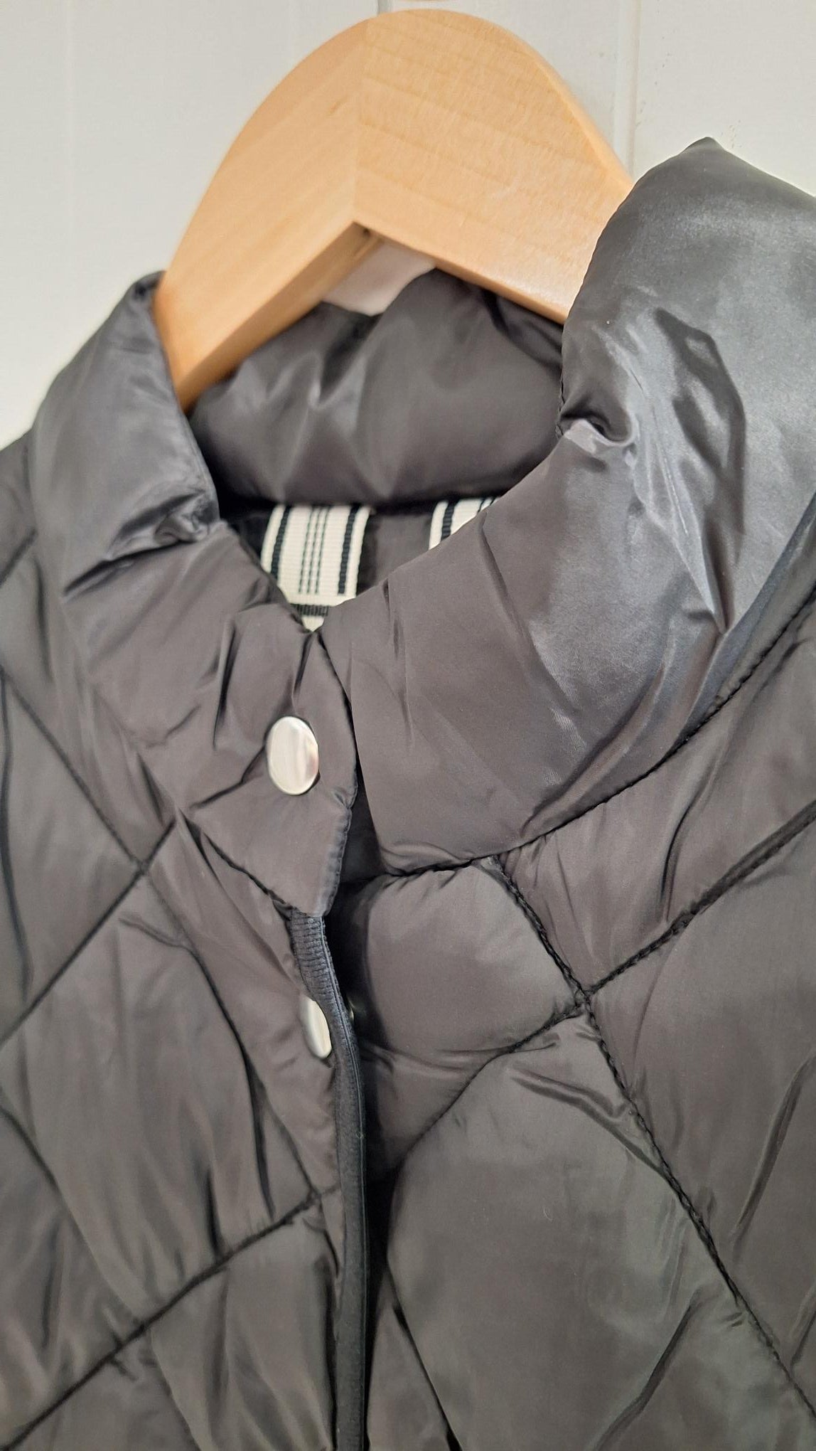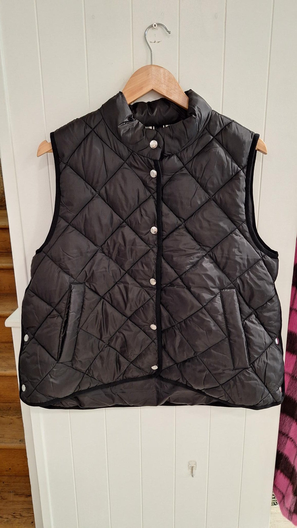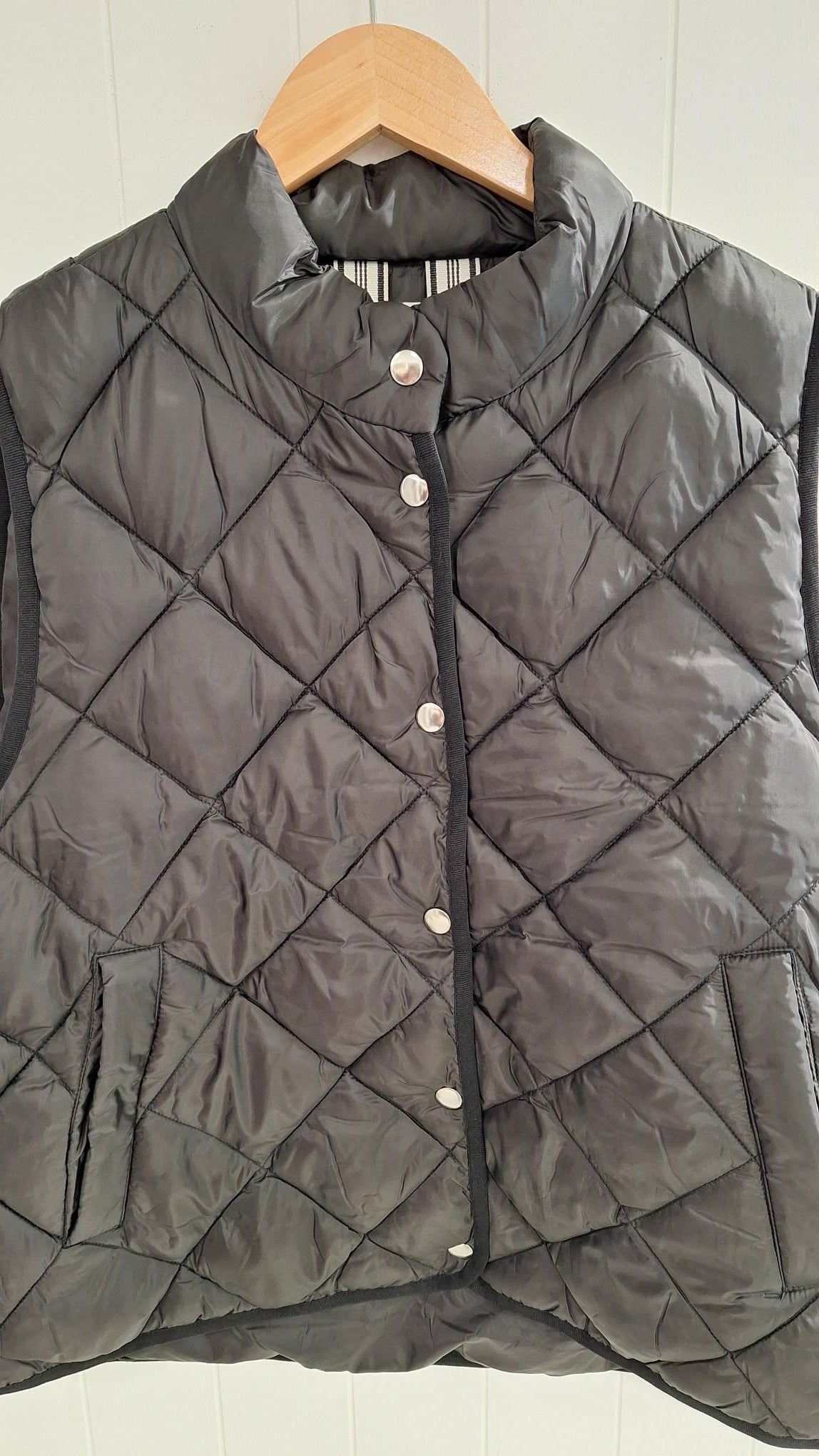 This warm black quilted gilet stands out with its unique details from side poppers, deep warm pockets, and high popper neckline. The perfect layering piece for this season. Pair it with everyday jeans or a leather skirt for a modern twist.