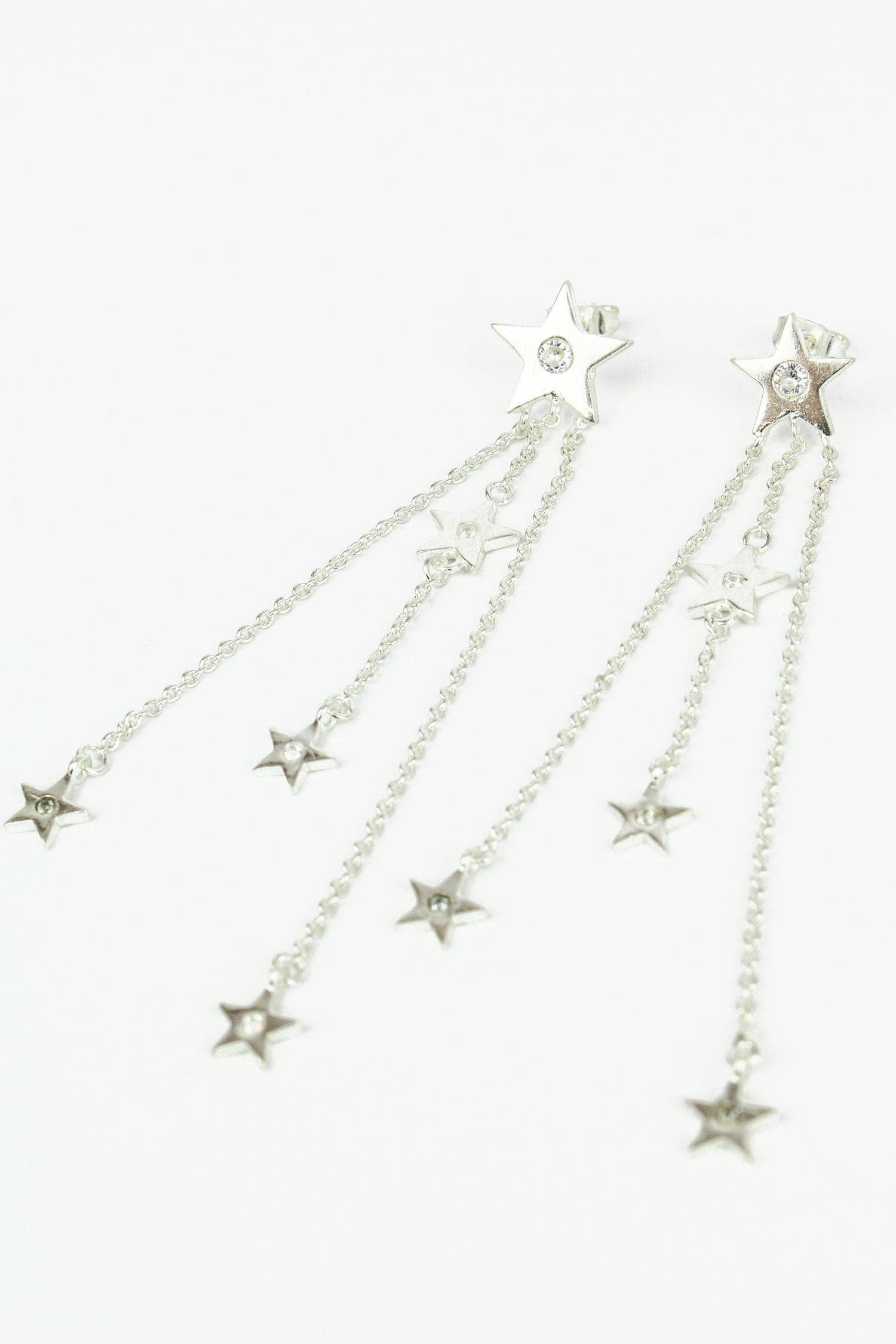 SILVER AND CZ STAR CHAIN DROP EARRINGS