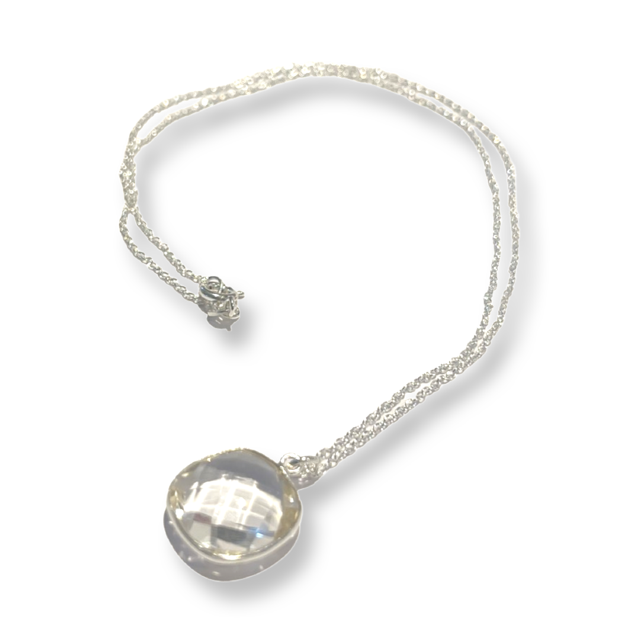 Single Clear Crystal Necklace with Silver Chain